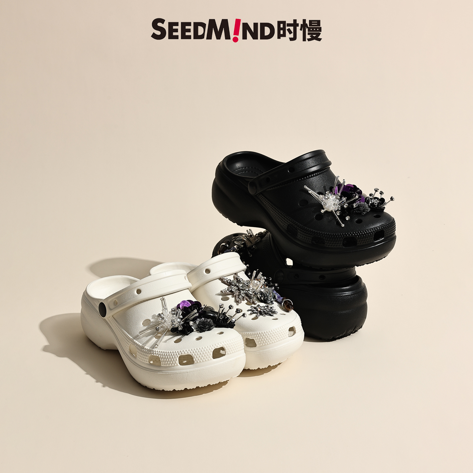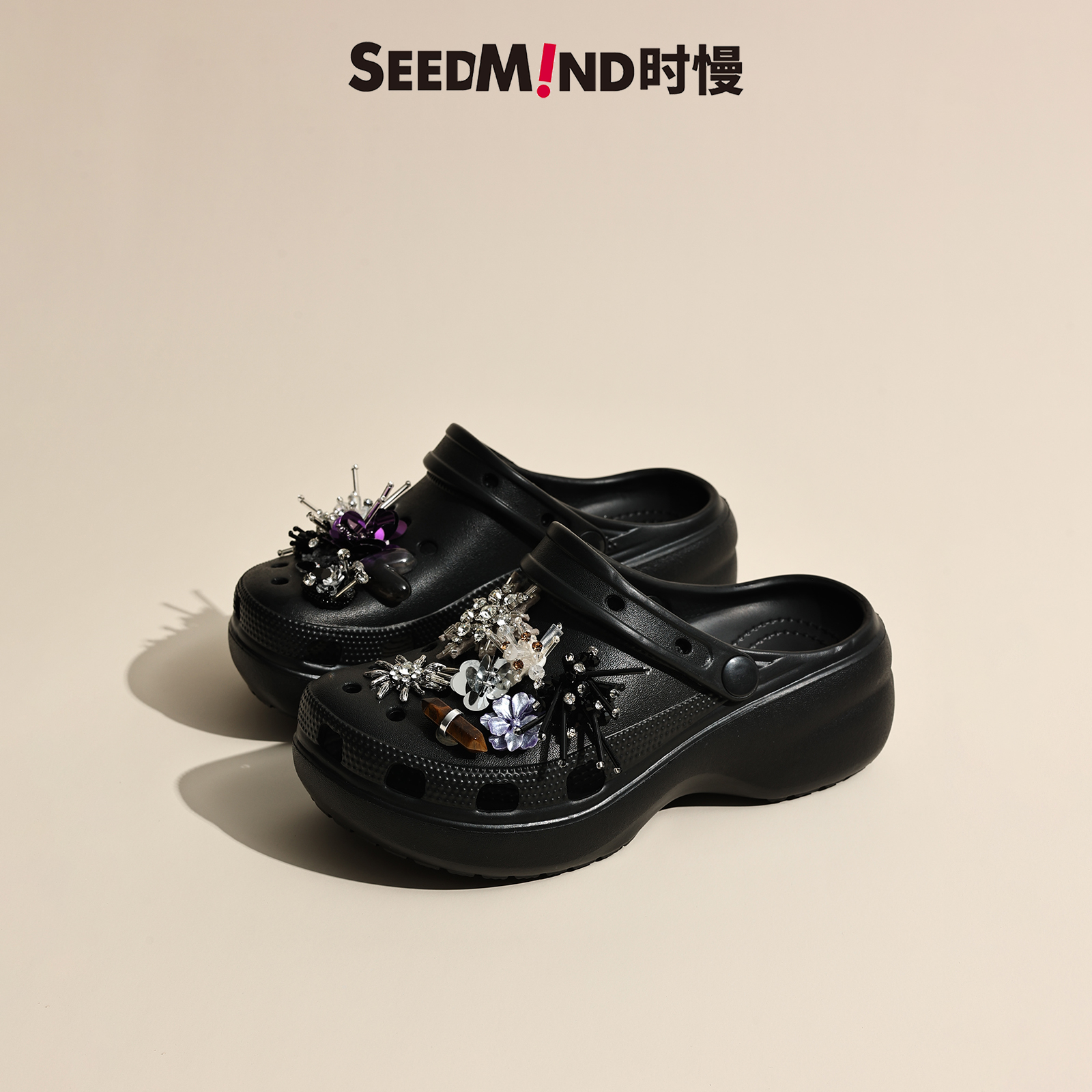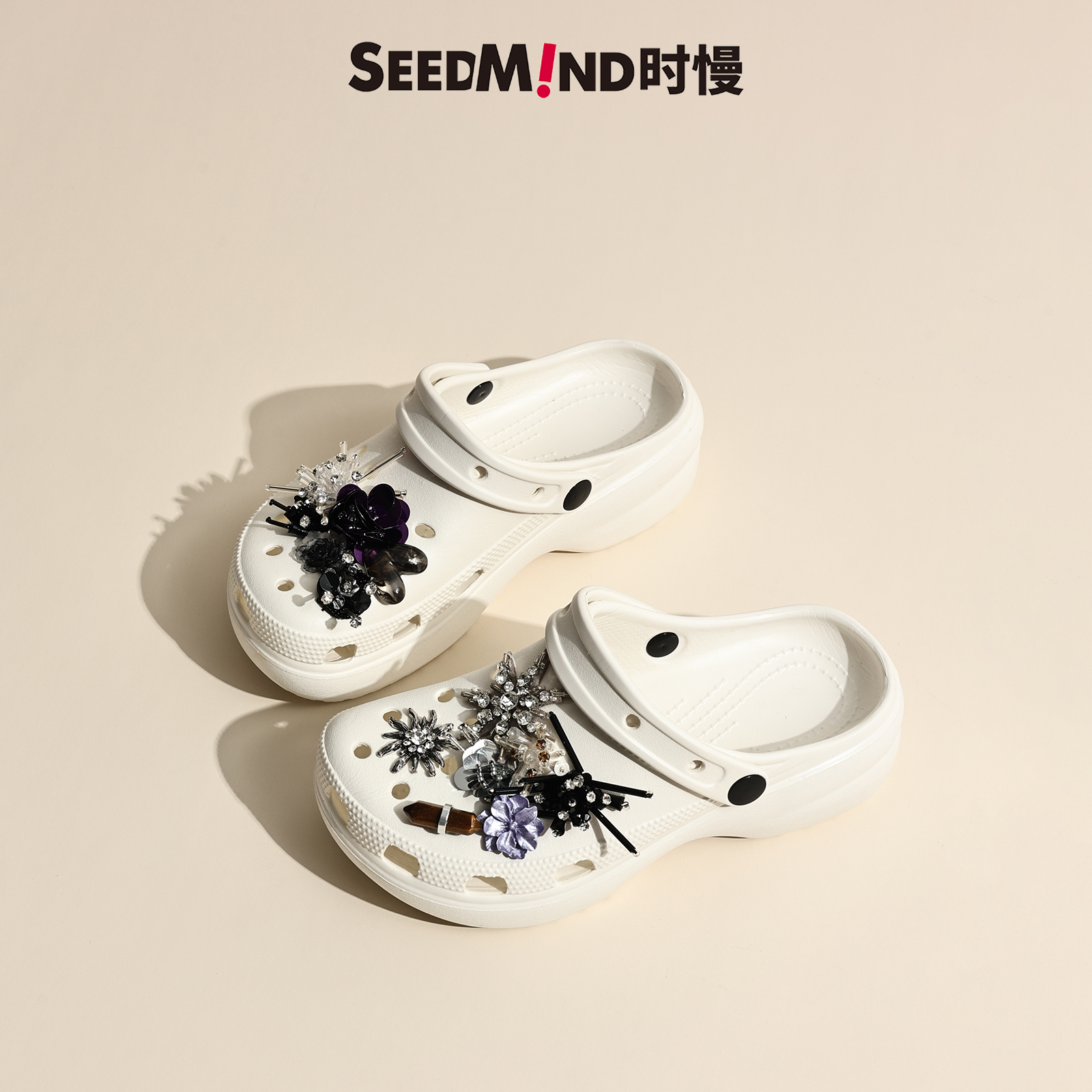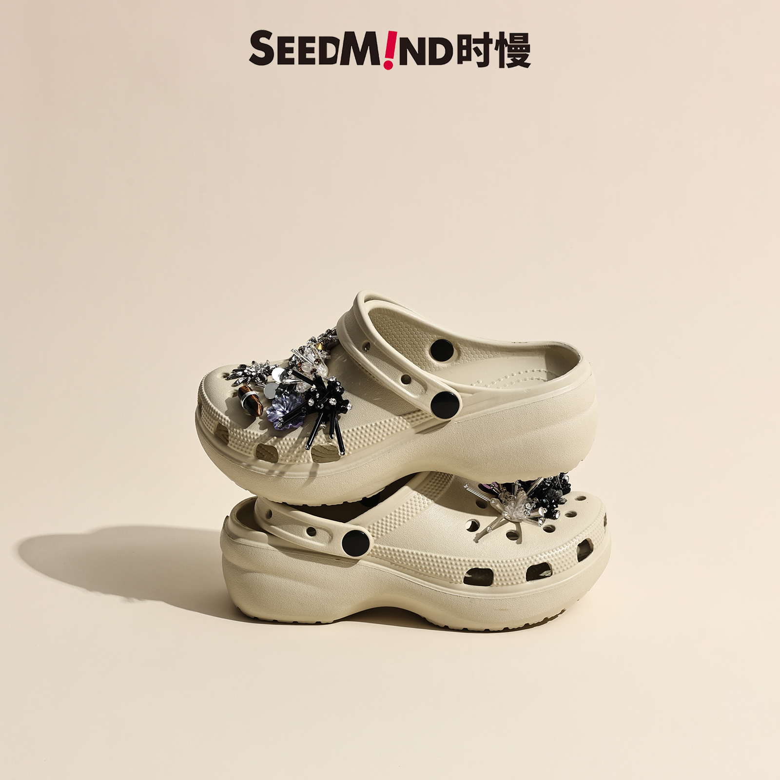 时慢2025夏cross云朵洞洞鞋女高级质感水钻厚底防滑可外穿凉拖鞋