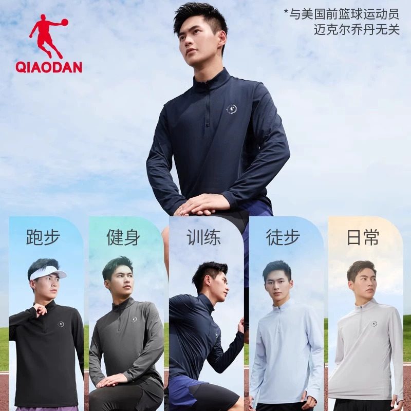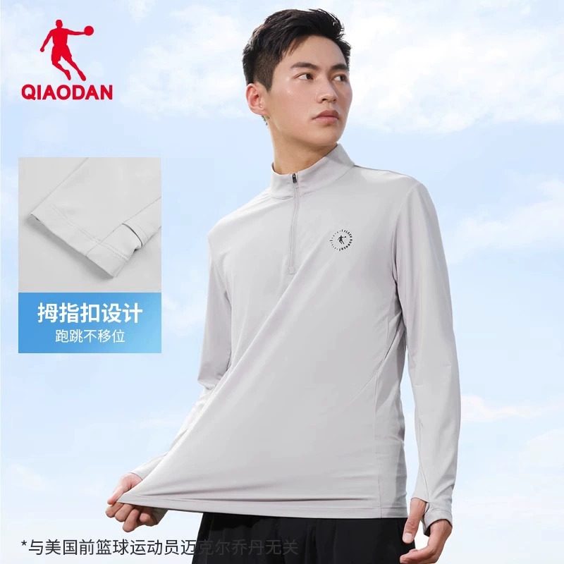 乔丹长袖T恤男2025秋季新款半拉链吸湿速干跑步内搭男士运动上衣