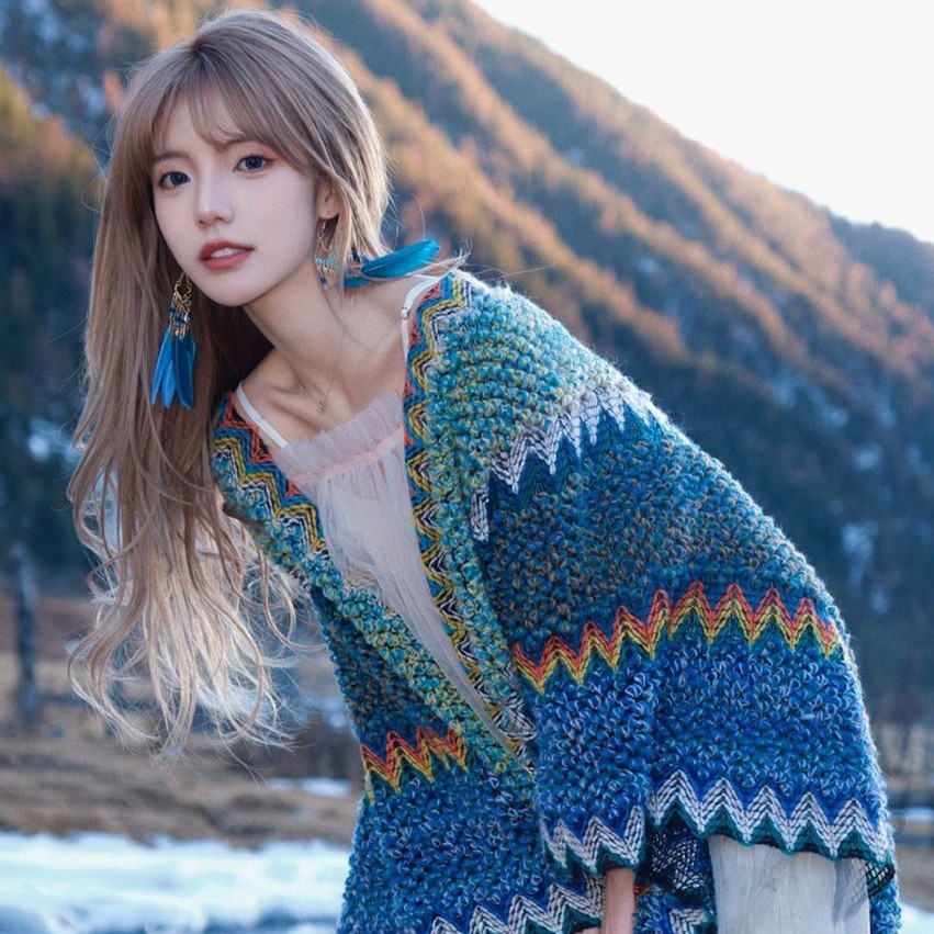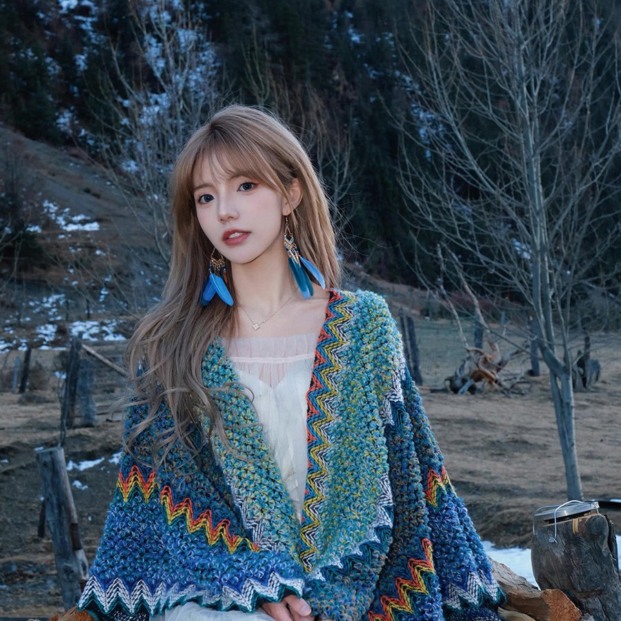 民族风披肩女秋冬外搭围巾云南旅游度假穿搭长款复古斗篷流苏