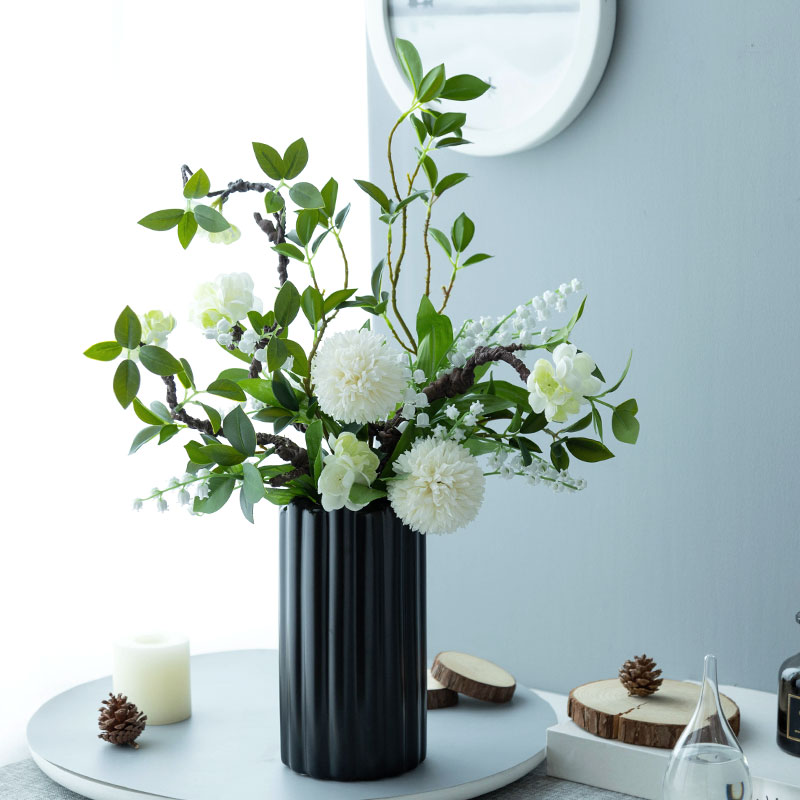 仿真花假花山茶叶风铃花白玫瑰绢花花艺清新绿植客厅家居餐桌摆件