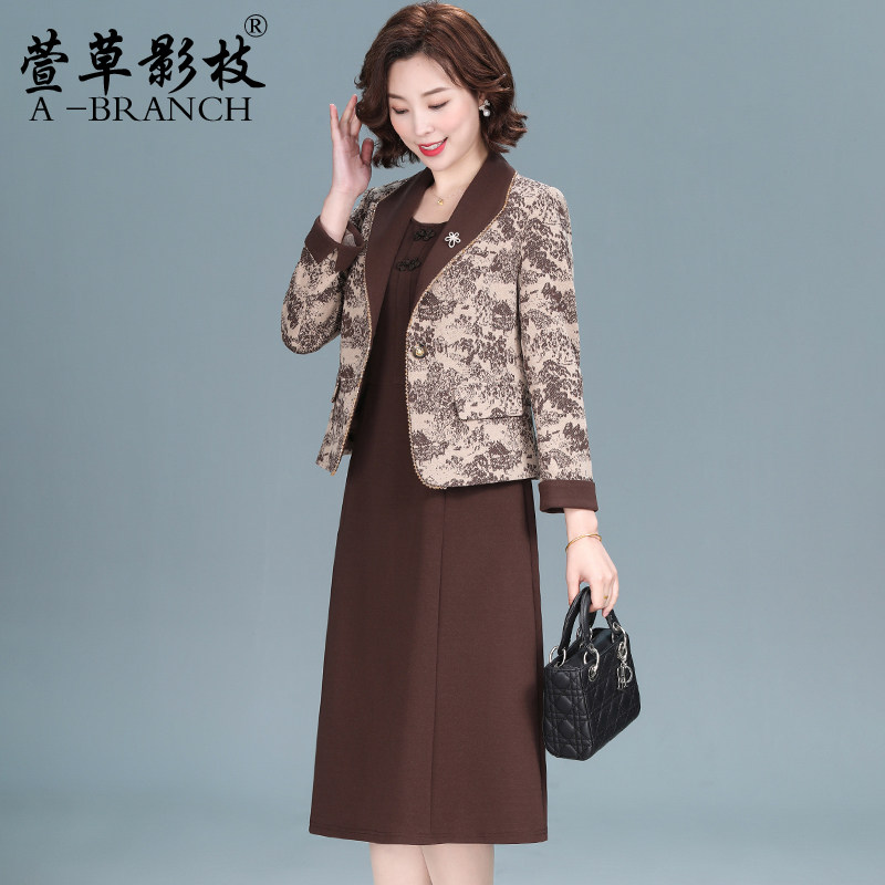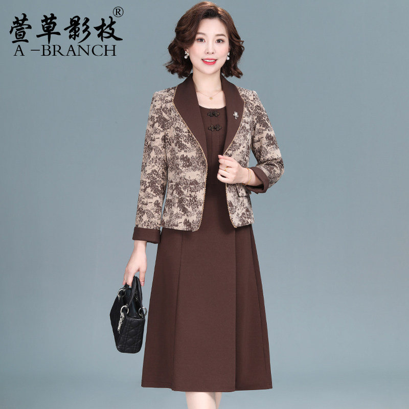 中年妈妈秋装连衣裙套装2025新款小西装外套中老年女装洋气两件套