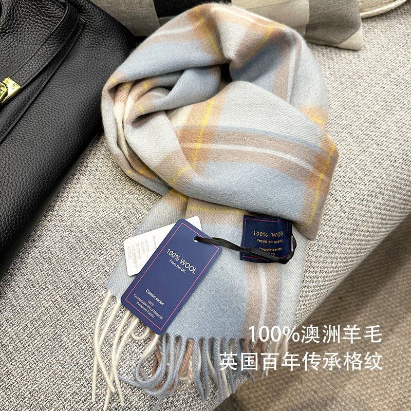 澳洲复古格纹100%羊毛红色格子围巾女新年礼物冬季圣诞保暖围脖男