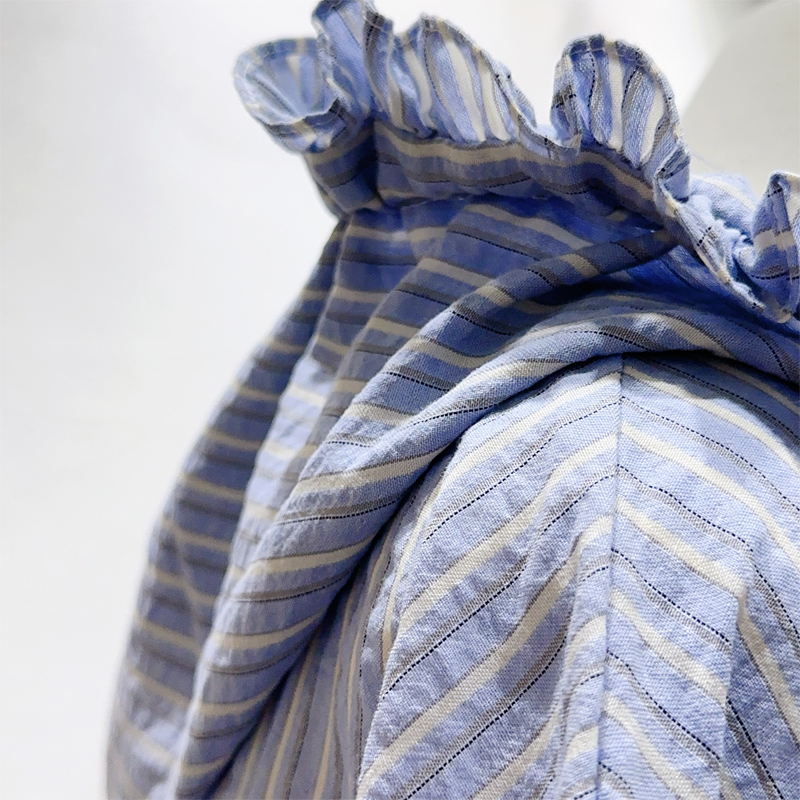 100%棉海盐蓝色竖条纹衬衫遮臀
