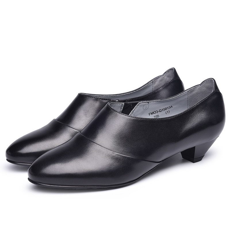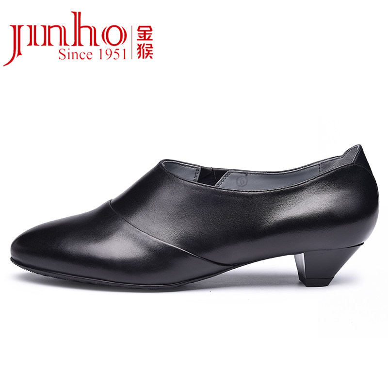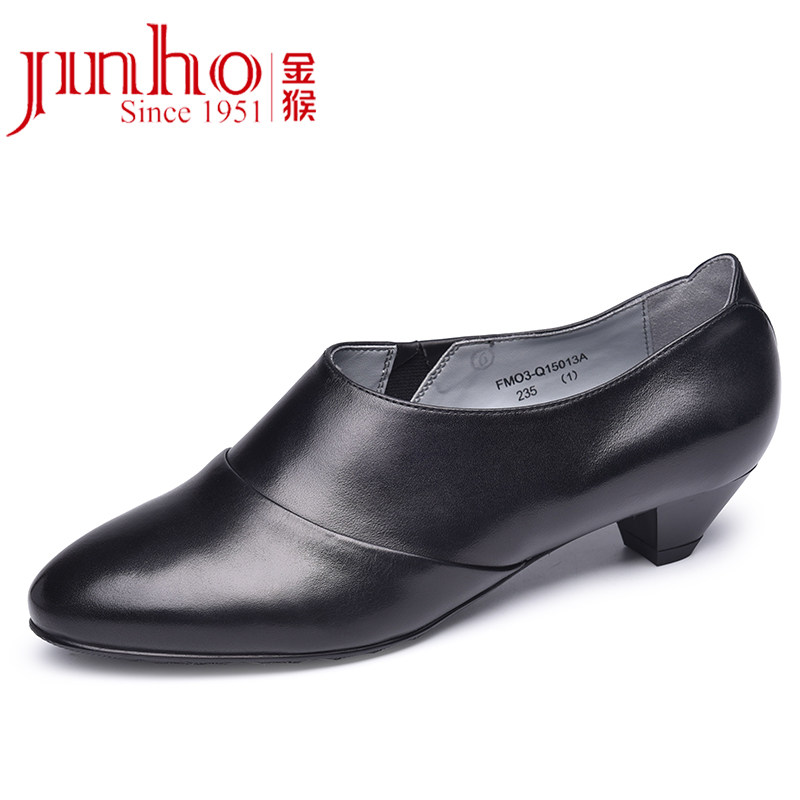 金猴女鞋春季新款牛皮高跟女单鞋女士正装皮鞋低跟女鞋