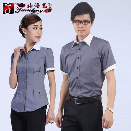 男女短袖时尚香槟白领工作服衬衣韩版修身易打理工装衬衫定制logo