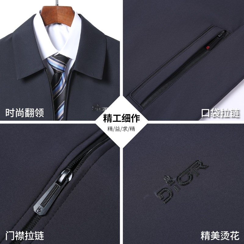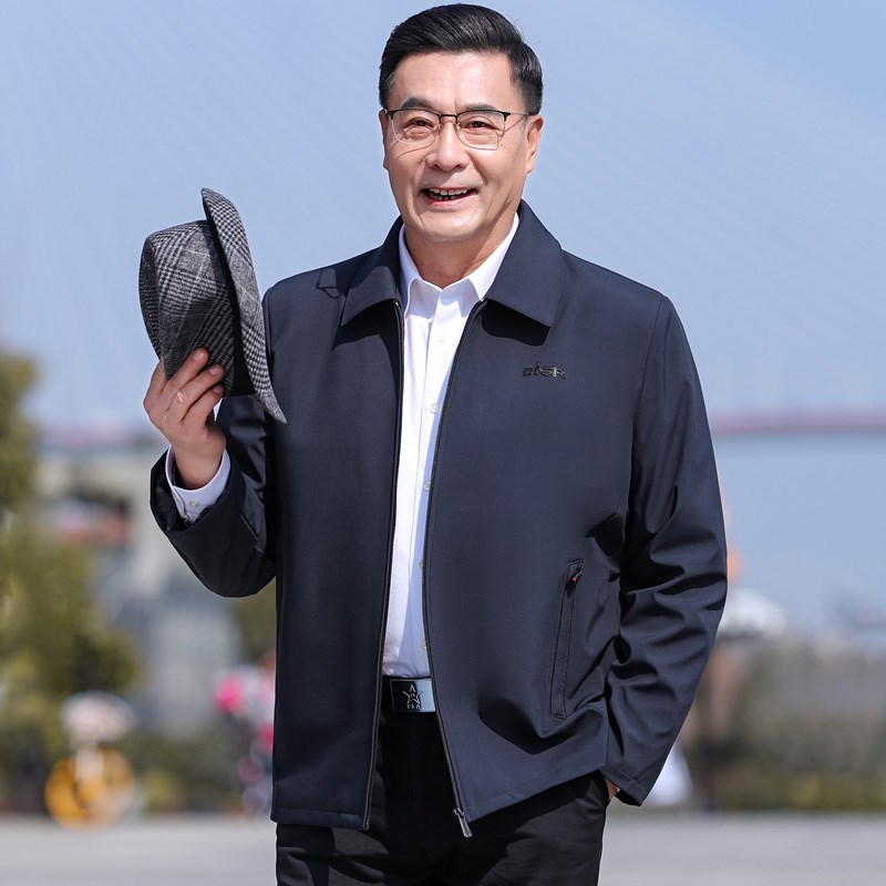 爸爸秋装外套春秋款翻领休闲夹克中老年父亲男装老人爷爷宽松衣服