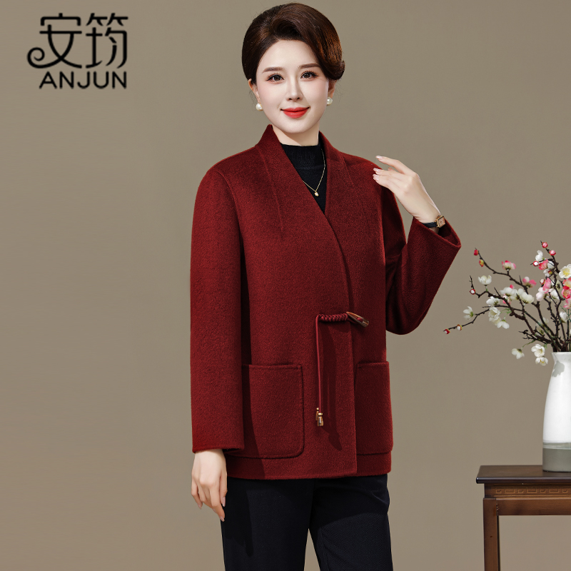 高端品牌毛呢大衣冬装短款小个子2025秋冬新款中式羊毛外套妈妈装