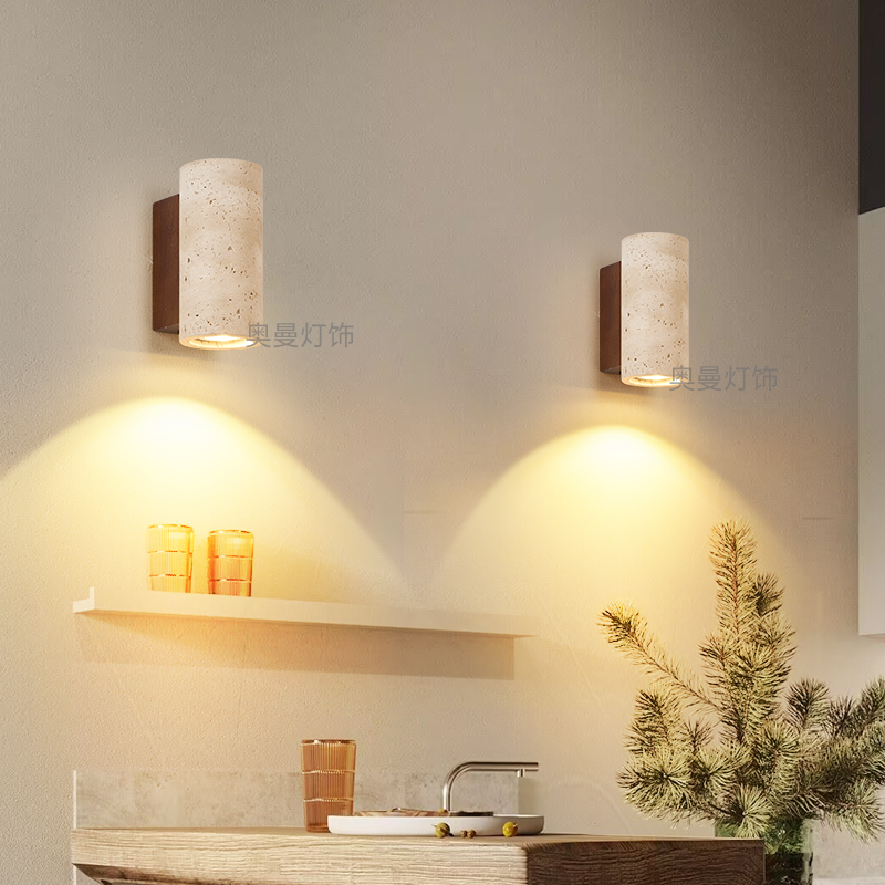 黄洞石日式侘寂风卧室床头壁灯北欧复古实木民宿客厅背景墙过道灯