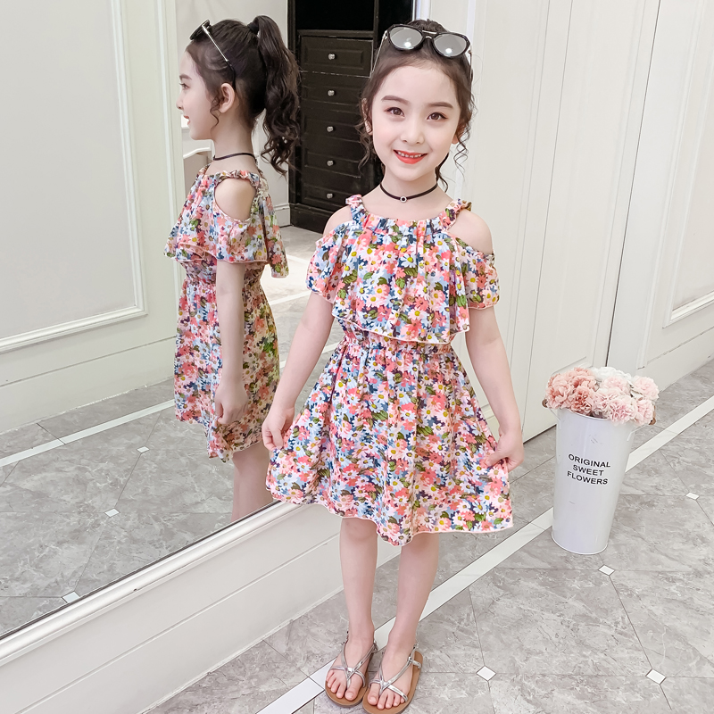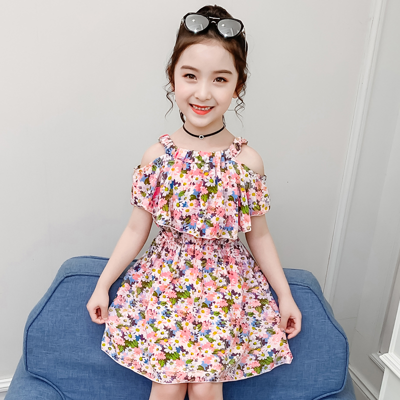 女童碎花连衣裙夏装2021新款小女孩公主儿童夏天洋气吊带雪纺裙子