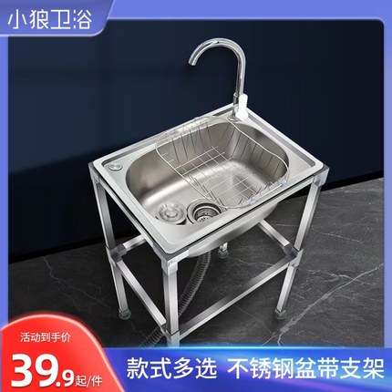 不锈钢洗菜盆洗手盆单槽带支架