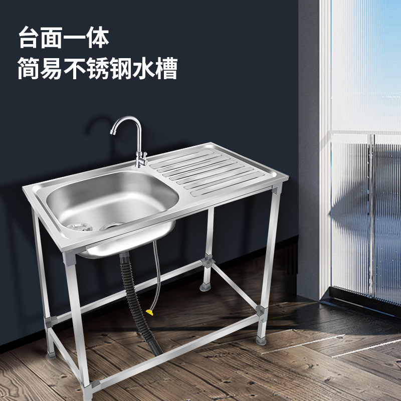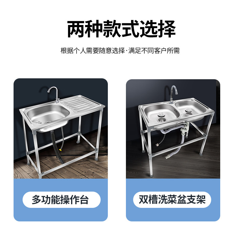 厨房不锈钢洗菜盆单槽带支架洗涤槽洗碗池水槽大单盆带架子