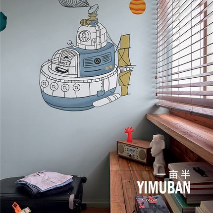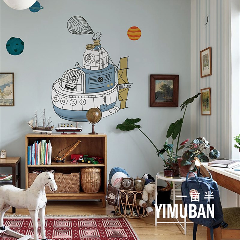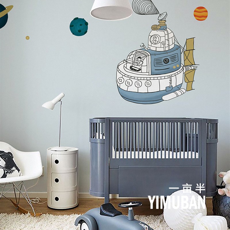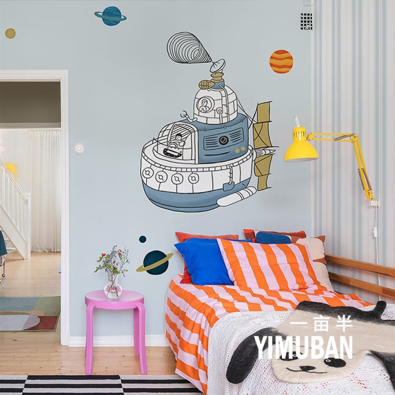 现代简约儿童房壁纸壁布星球宇宙飞船男女孩卧室床头背景墙纸墙布
