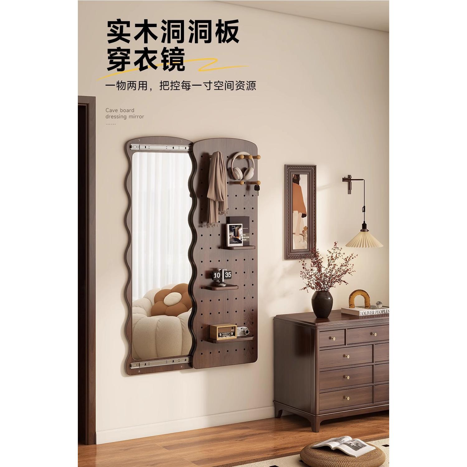 洞洞板穿衣镜隐形可关闭推拉全身镜壁挂式家用玄关挂墙大试衣镜子