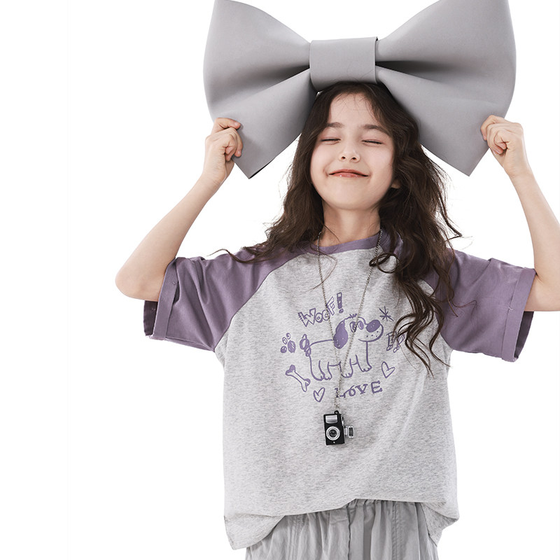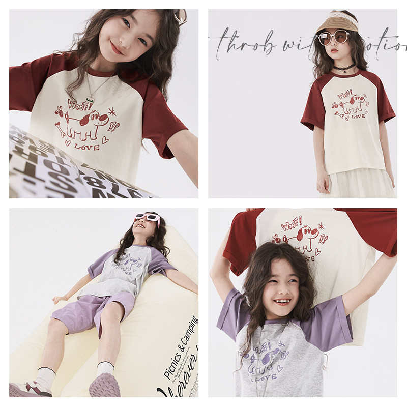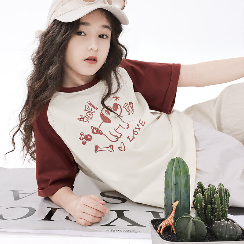 女童短袖T恤2025新款夏季儿童插肩袖上衣中大童亲子装童装背心