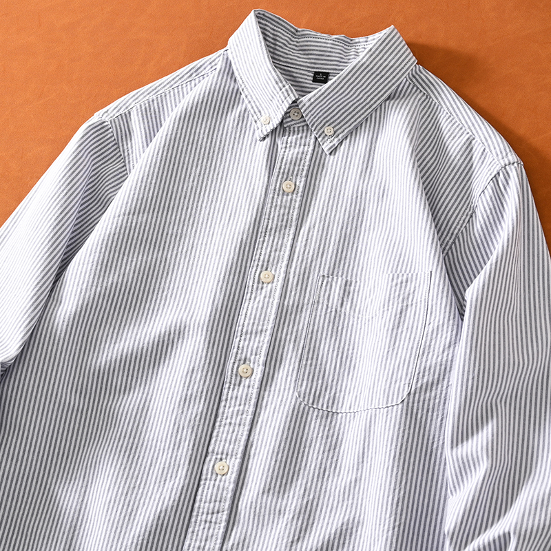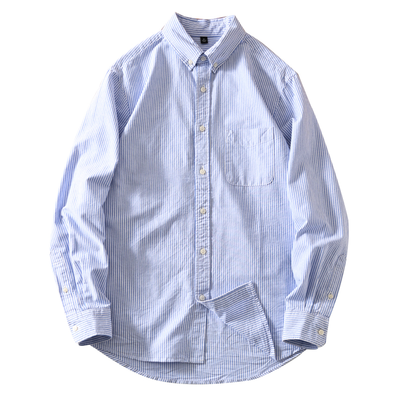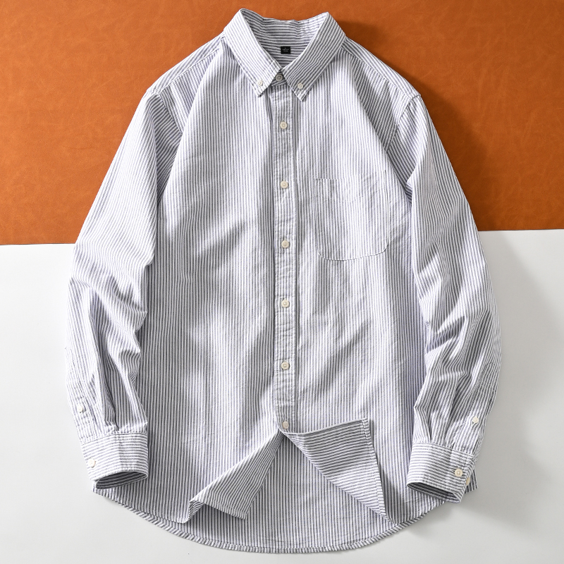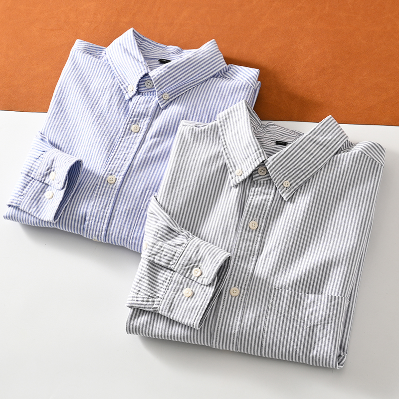 外贸日单工厂原单尾货春夏季男士水洗纯棉休闲长袖条纹衬衫衬衣男