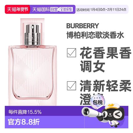 美国直邮Burberry博柏利BritSheer红粉恋歌女士淡香水30/50/正品