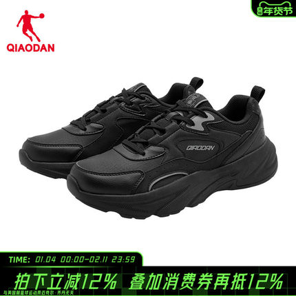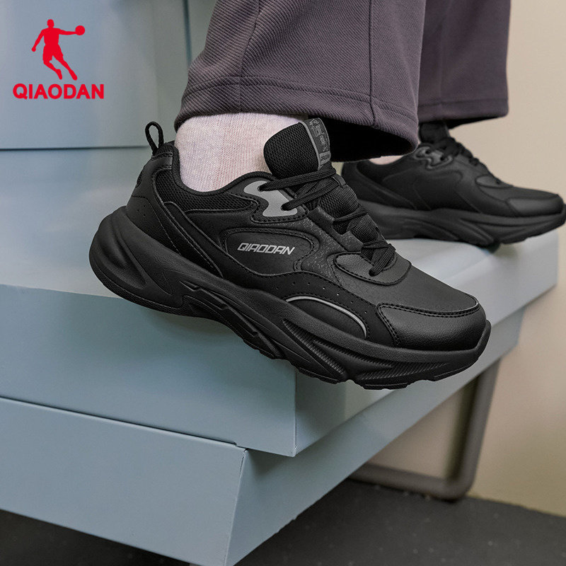 【商场同款】乔丹男休闲鞋皮面防水黑色运动鞋跑鞋QDL043254433G