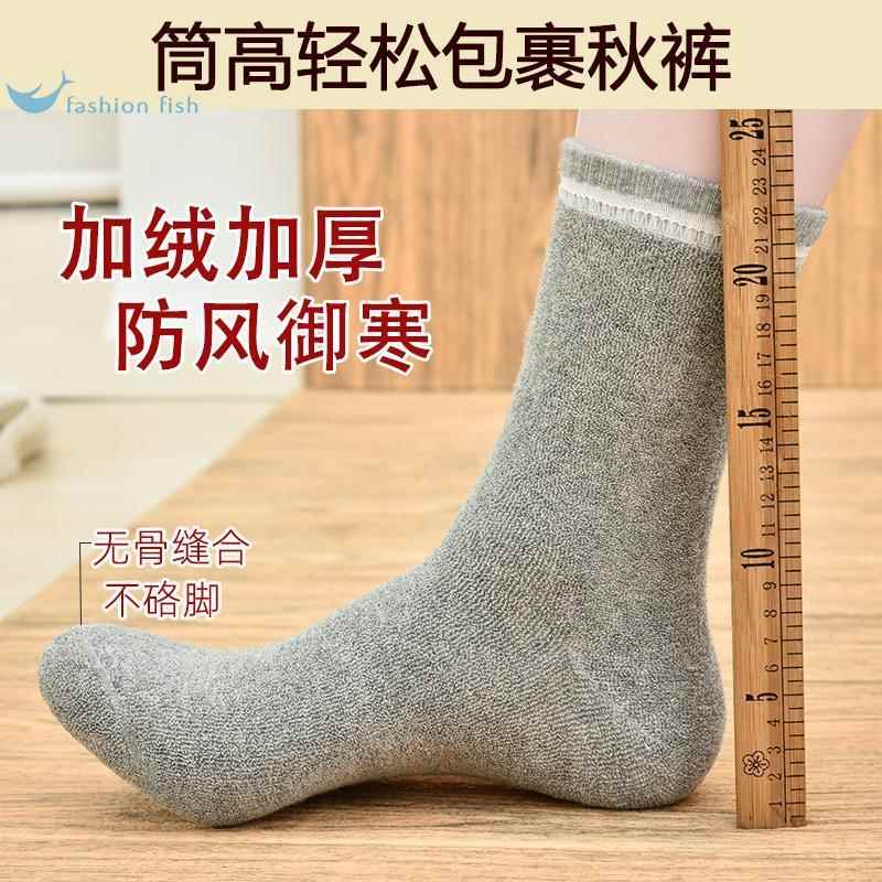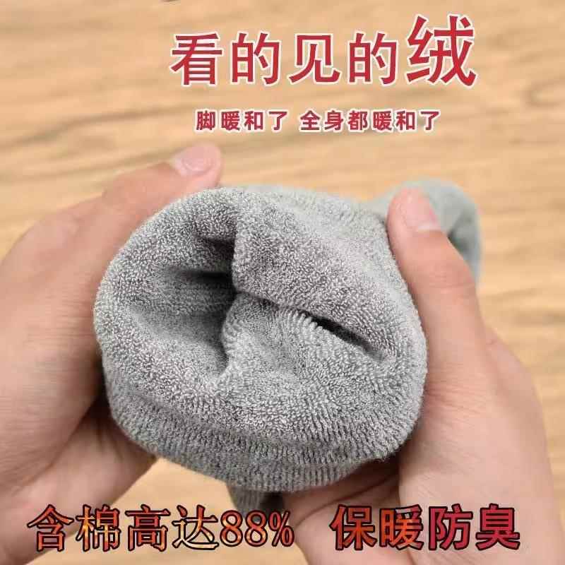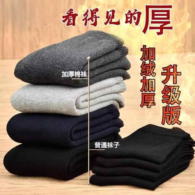 加绒袜子男纯棉加厚中筒棉袜季保暖男袜冬款无骨男士毛巾长筒