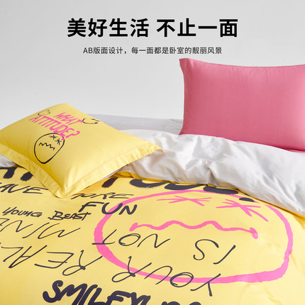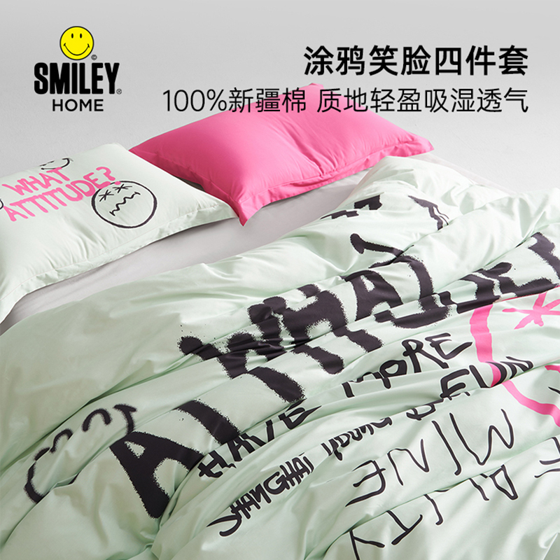 SMILEY笑脸涂鸦笑脸纯棉四件套亲肤被套床单全棉床品斜纹儿童被套