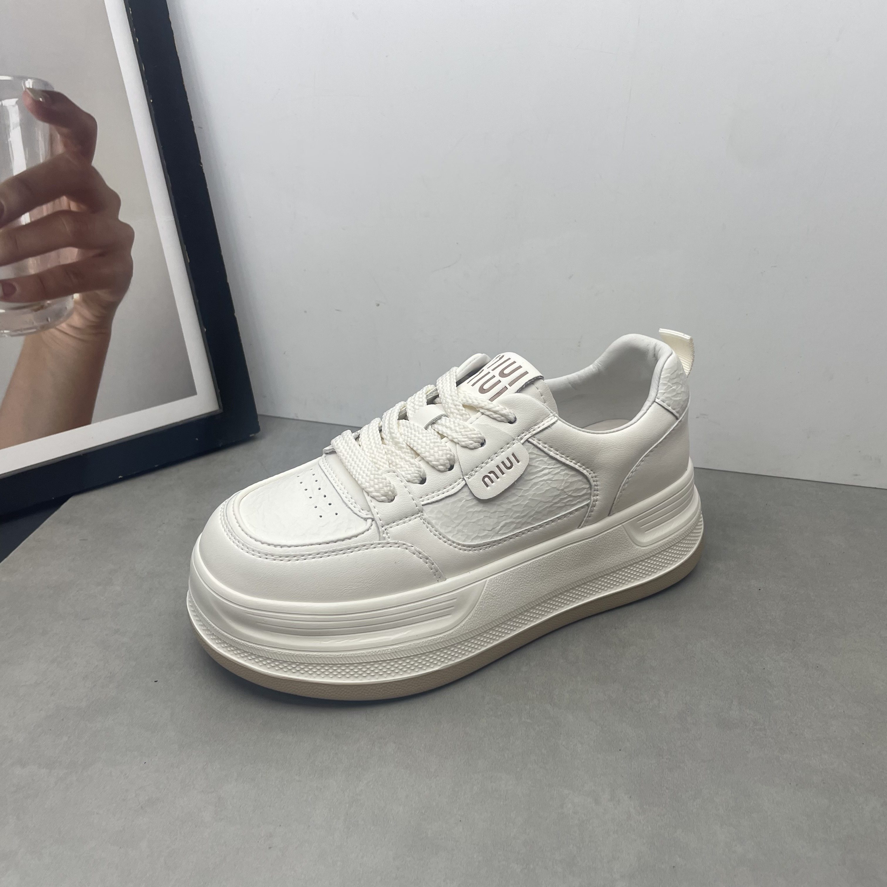工厂处理真皮女鞋2025秋季新款圆头松糕厚底休闲百搭小白鞋女单鞋