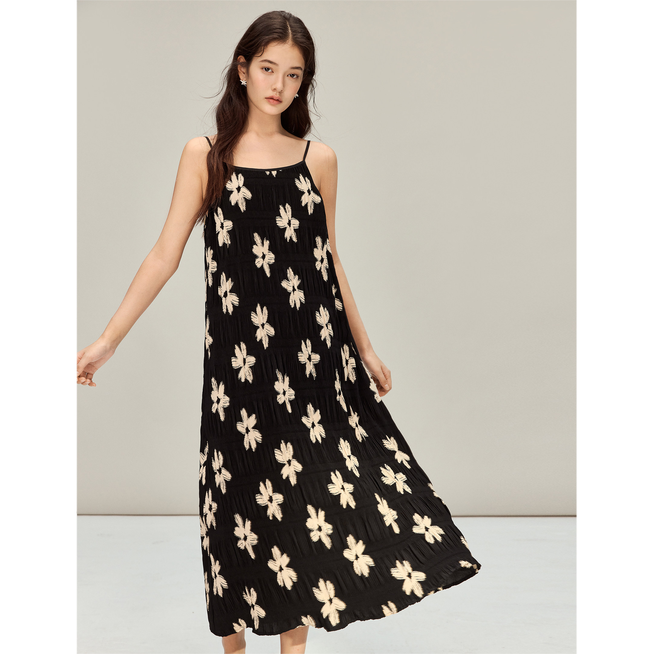 茵曼度假风印花绝美吊带连衣裙2026春季女装新款显瘦无袖中长裙子