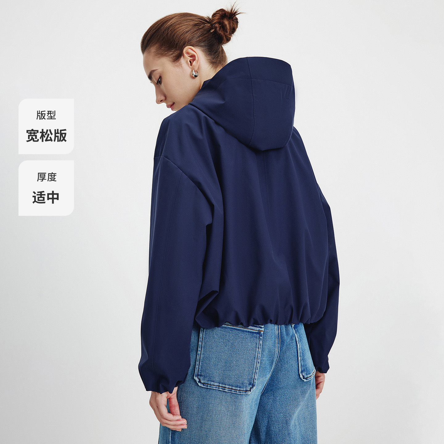 [三防]Navigare意大利小帆船秋季宽松连帽夹克女休闲设计感短外套