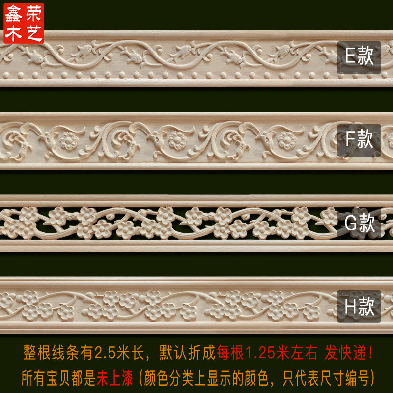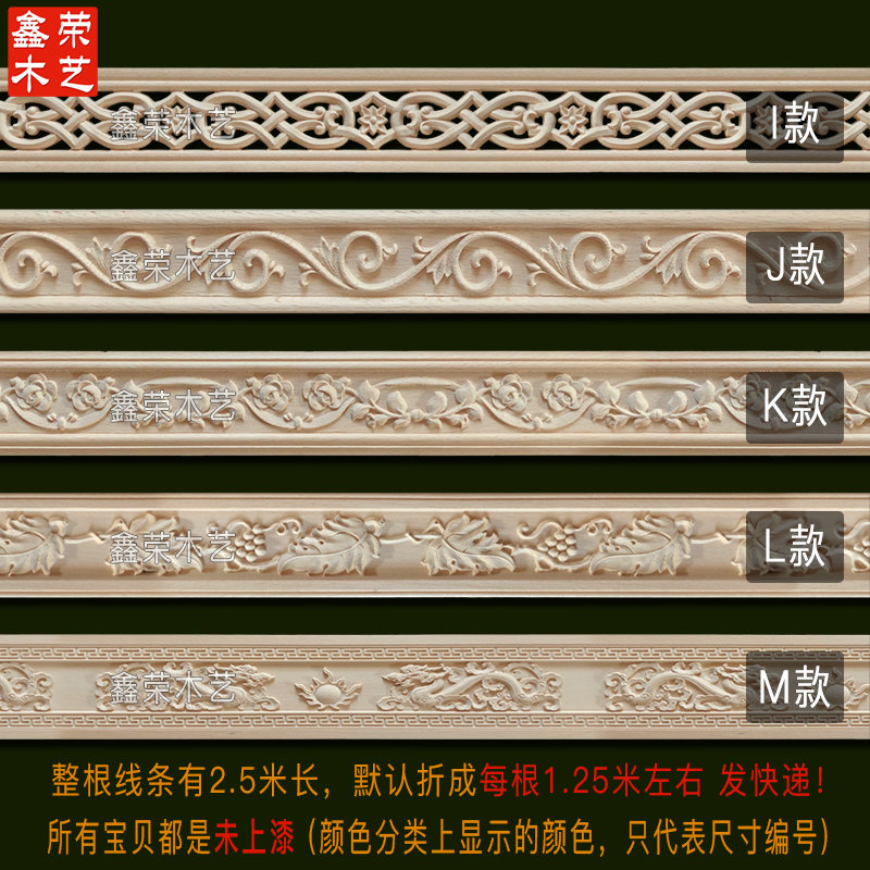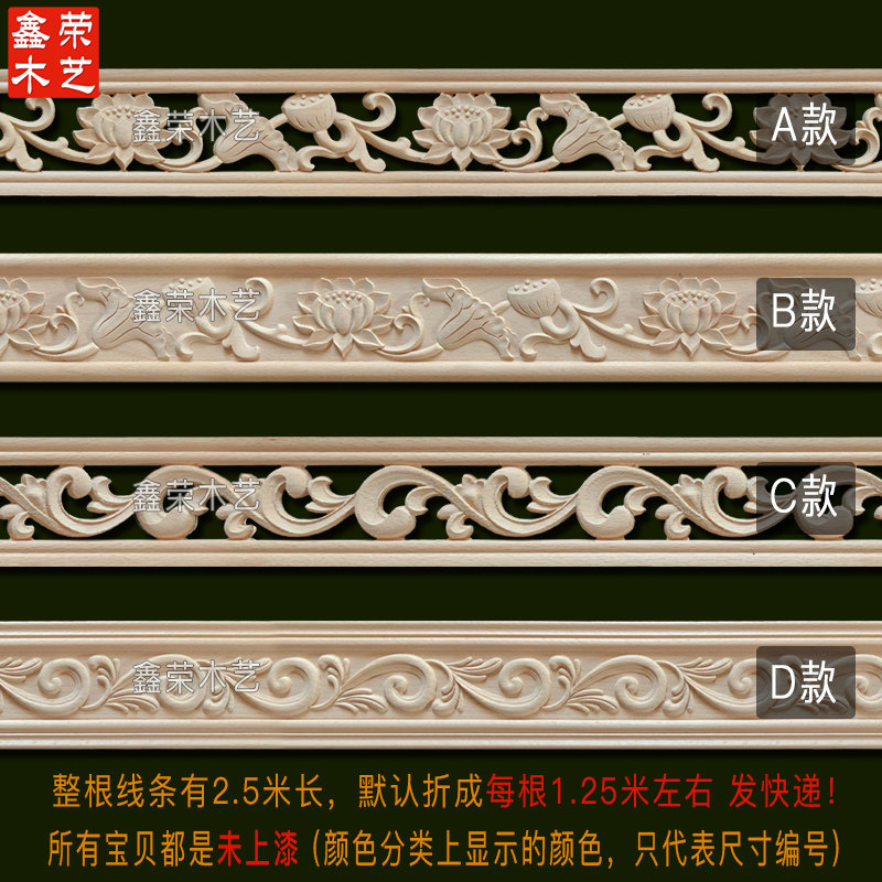 东阳木雕实木欧式线条镂空荷花双龙戏珠客厅吊顶腰线精雕中式定制