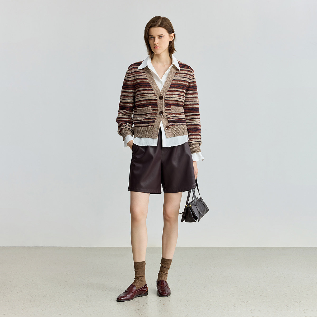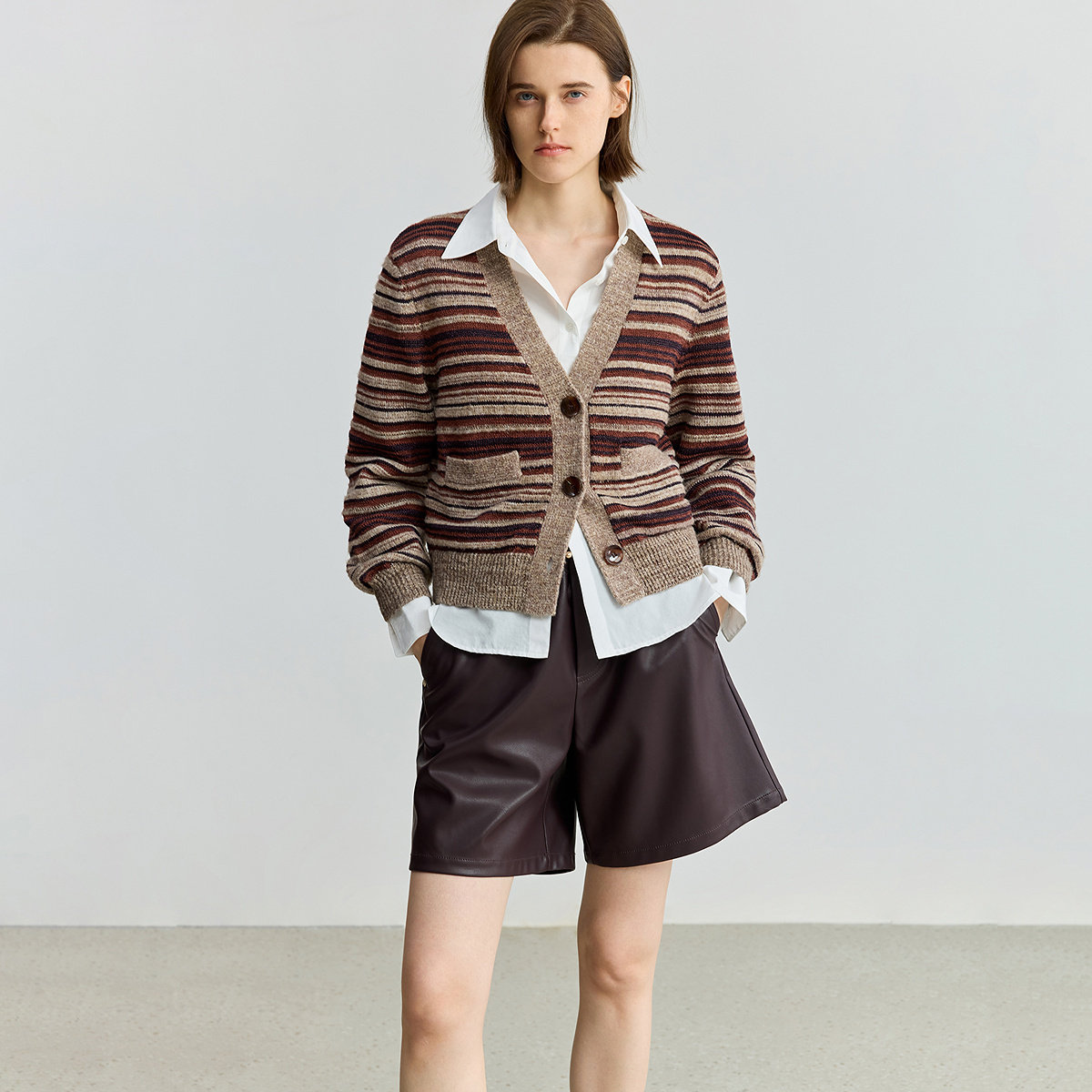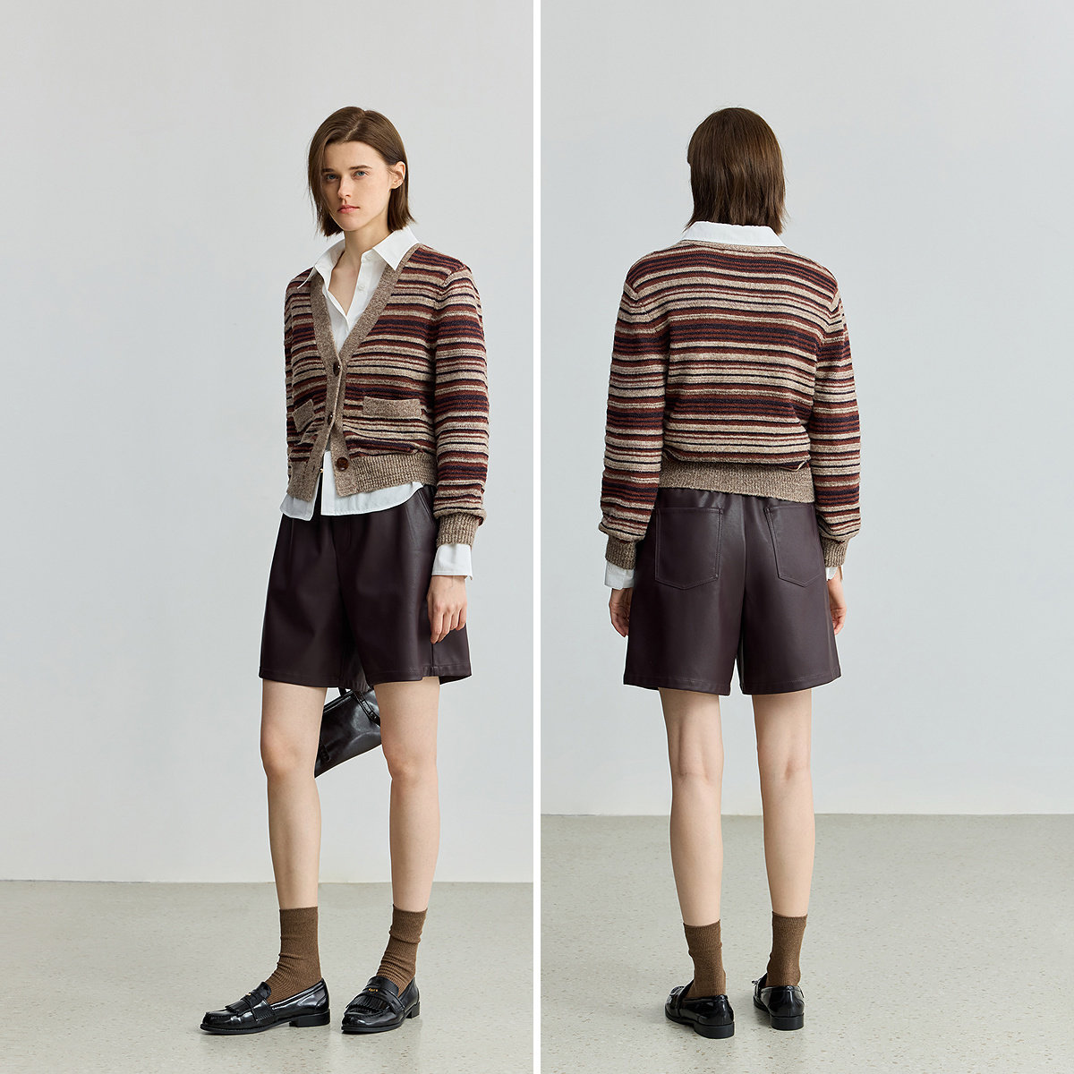 LILY撞色女装新款条纹针织开衫