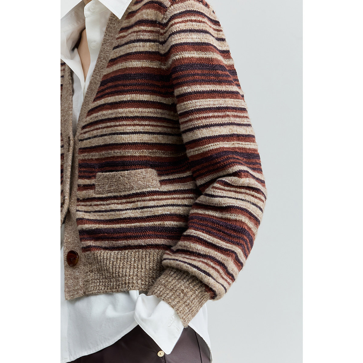 【商场同款】LILY2025新款女装含羊毛落肩休闲撞色条纹针织开衫