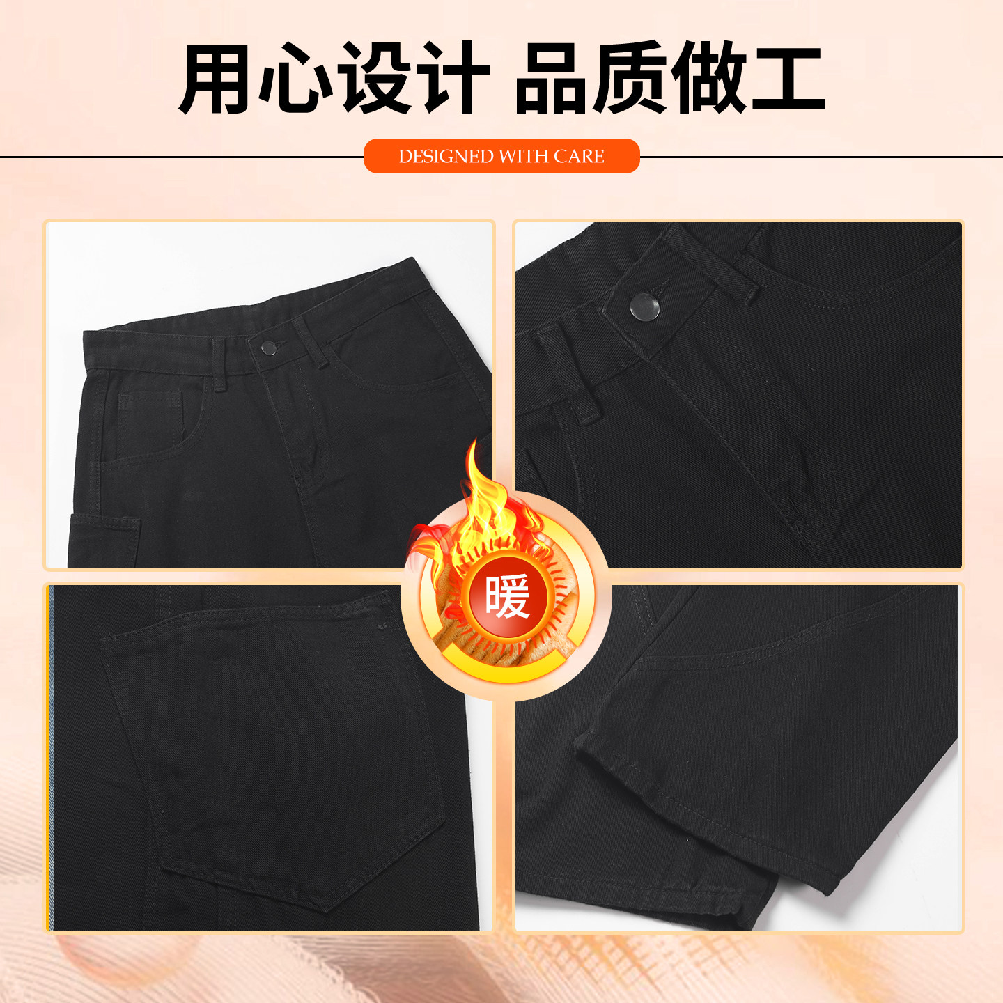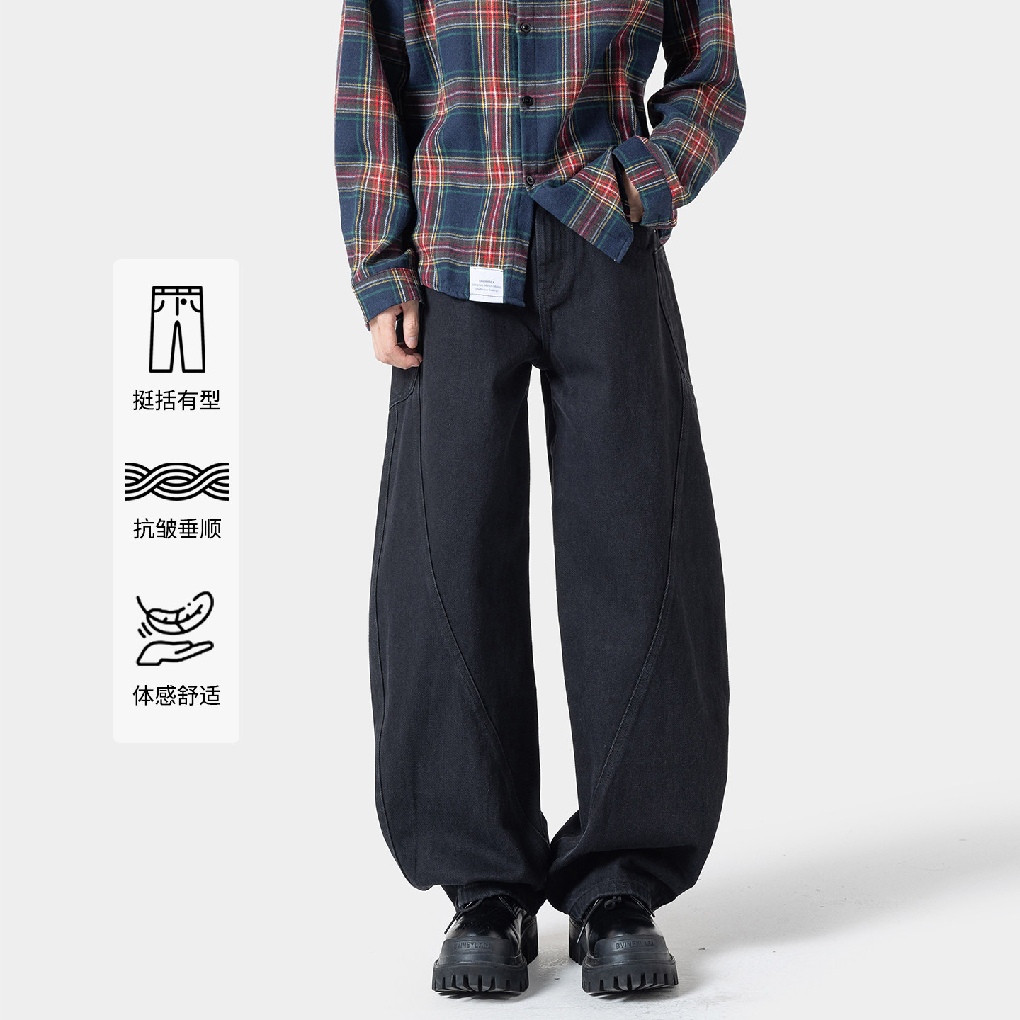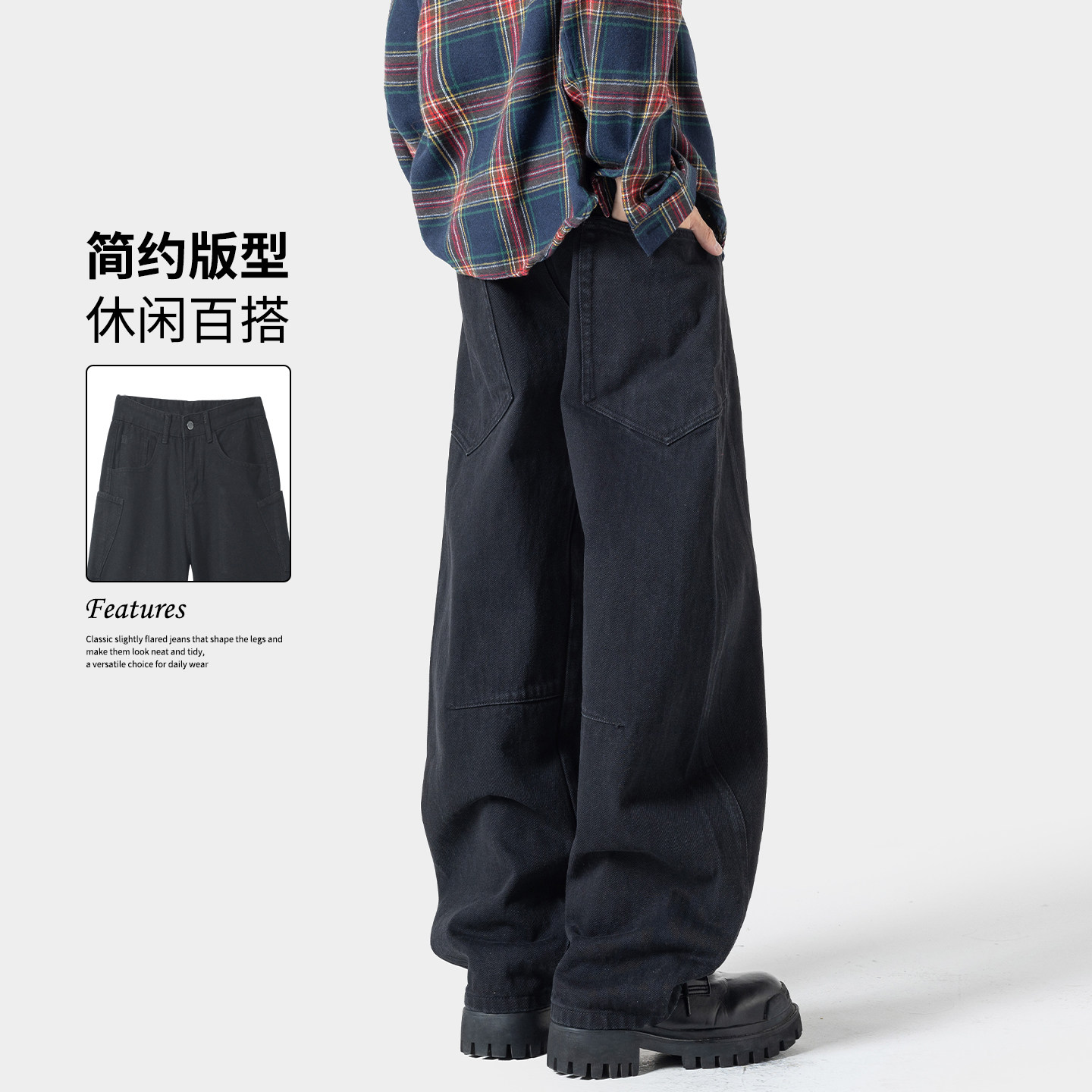 秋冬加绒青少年美式弯刀保暖牛仔裤男宽松潮流百搭阔腿水洗牛仔裤