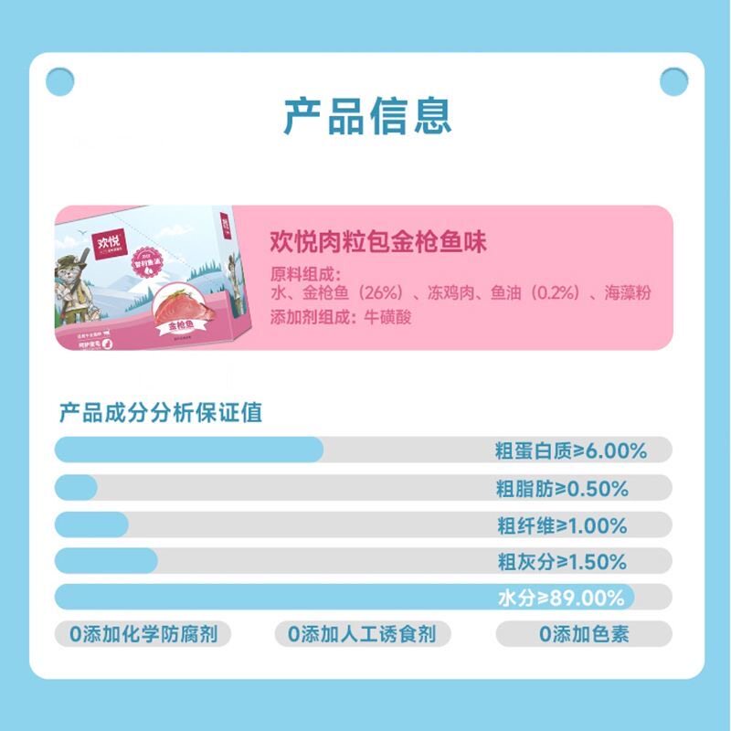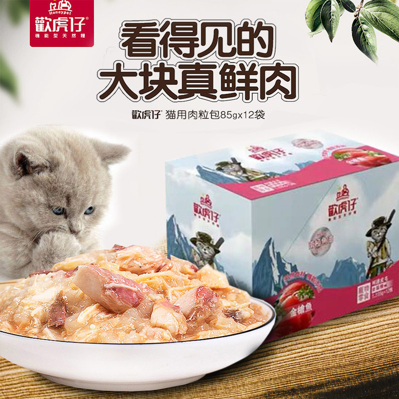 欢悦欢虎仔猫咪金枪鱼鲜封肉粒包85g*12包妙鲜罐头湿粮零食猫粮
