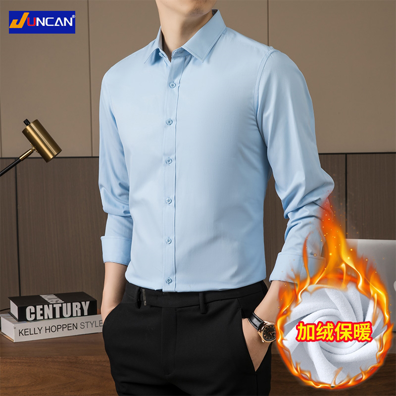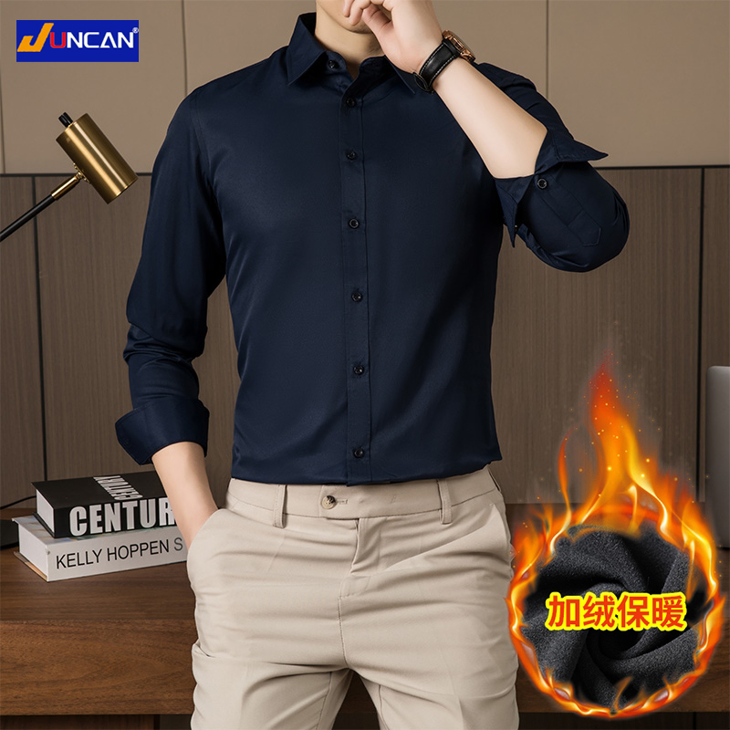 高档男士加绒加厚一体绒衬衫秋冬季商务休闲职业工装修身保暖衬衣