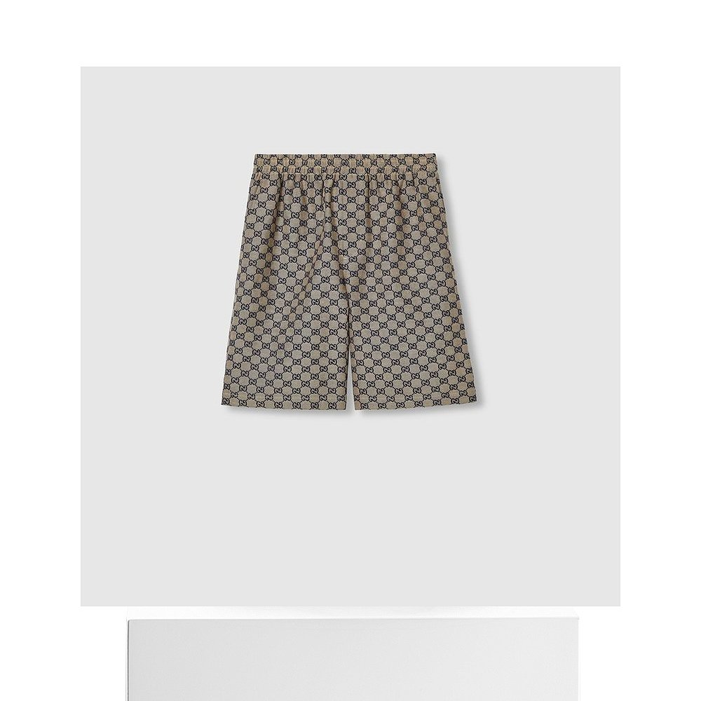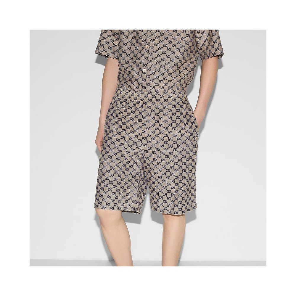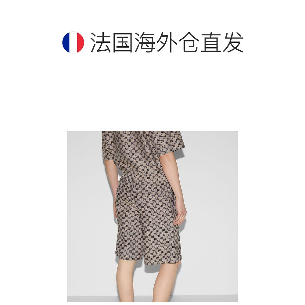 自营欧洲直邮Gucci古驰男士米色和蓝色GG亚麻混纺短裤