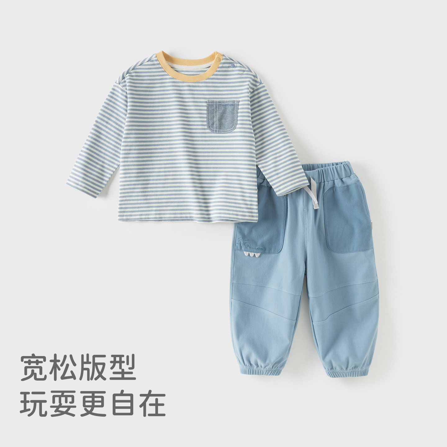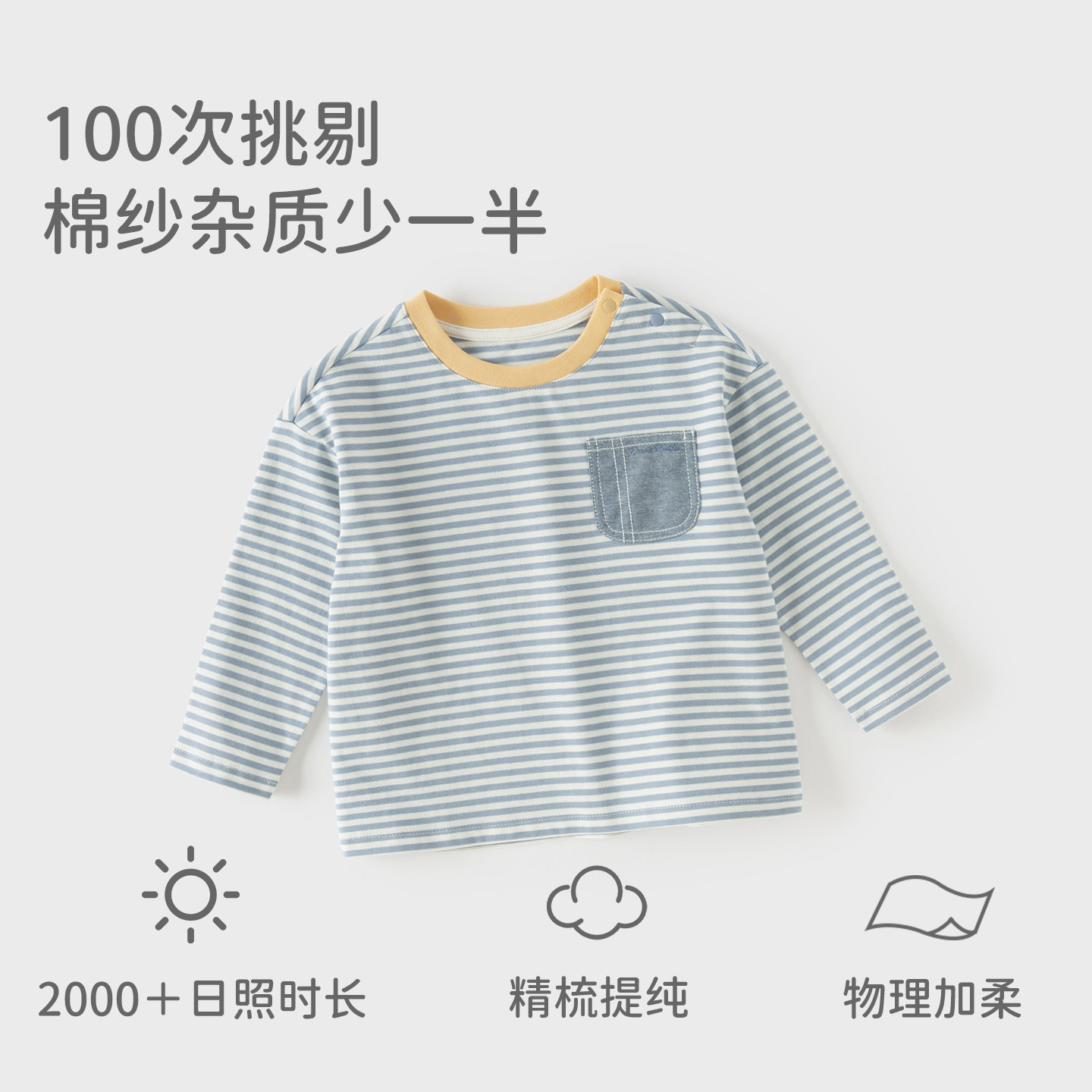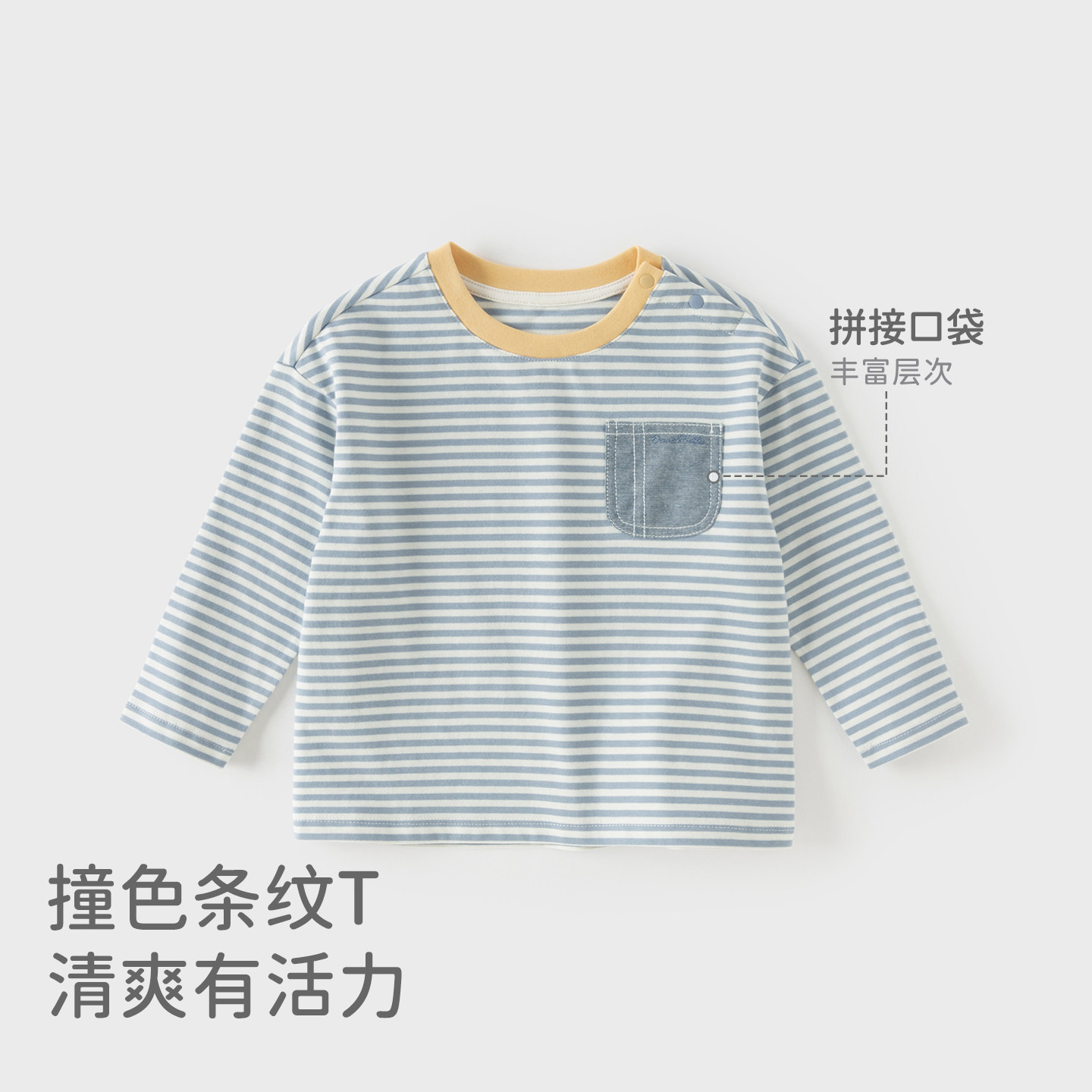 戴维贝拉男童纯棉T恤宝宝A类打底衫2026春装新款儿童长袖条纹上衣