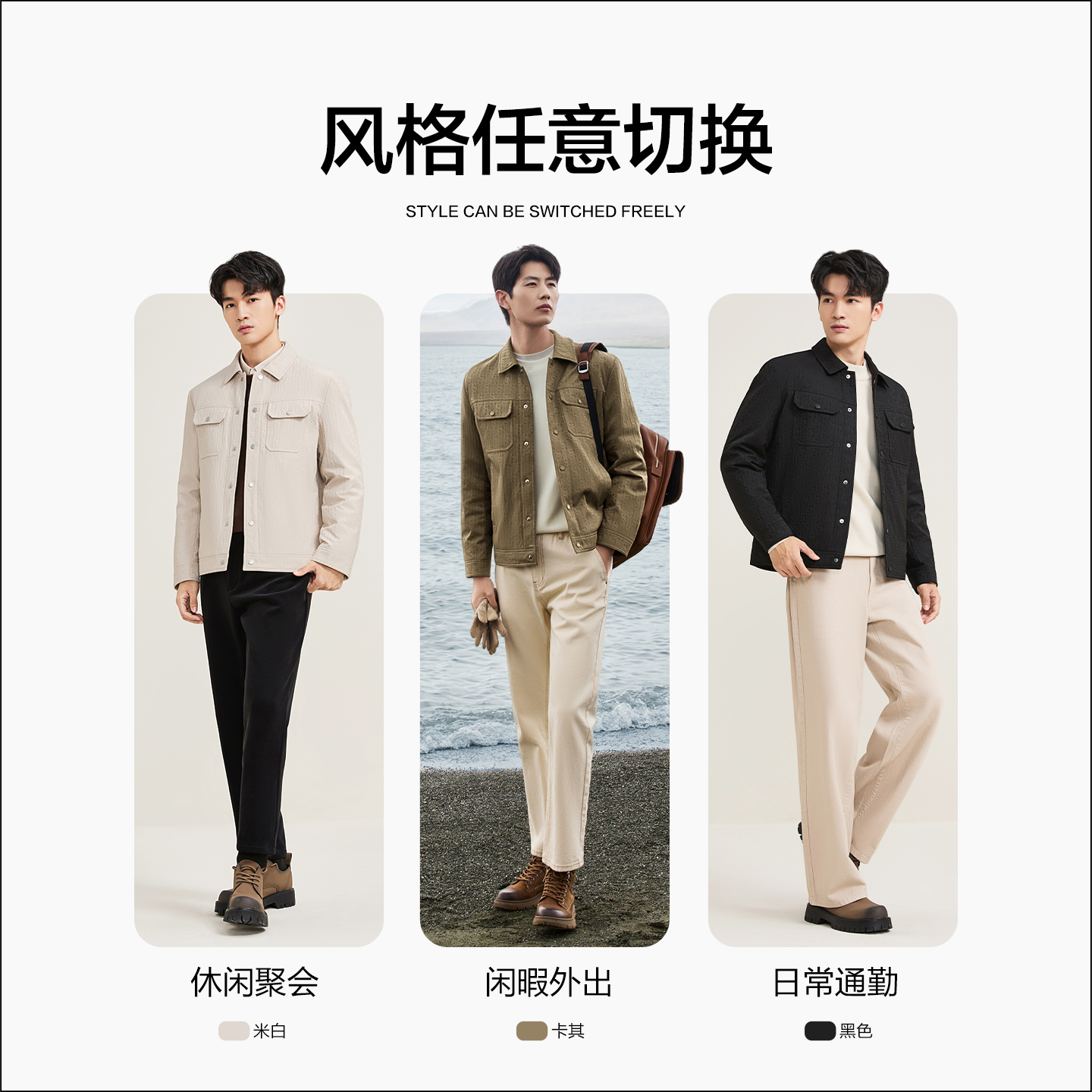 【黄金鲜羽绒】柒牌夹克羽绒服男士冬季翻领休闲上衣白鸭绒外套
