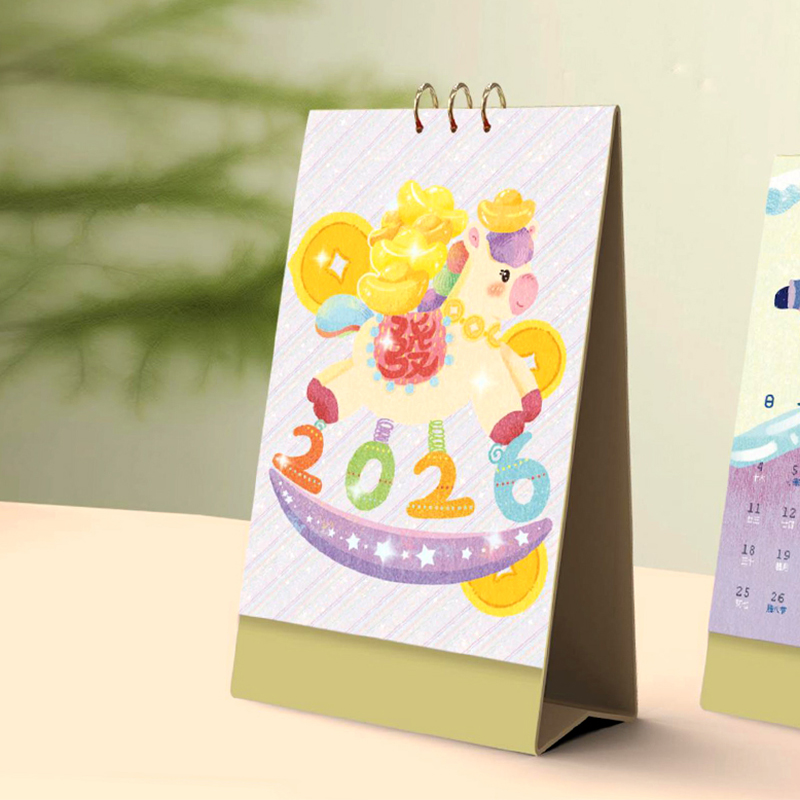 和创 2026马年创意简约个性中国风日历花卉艺术文化台历家用商务记事打卡本桌面小摆件企业印刷定做小礼品