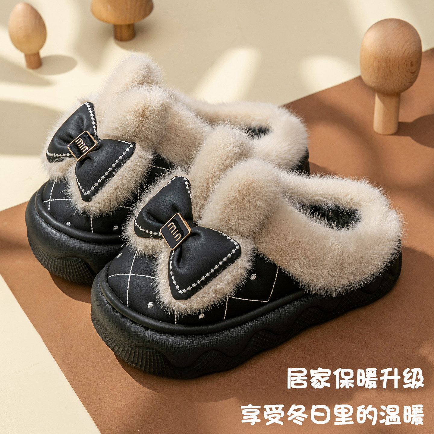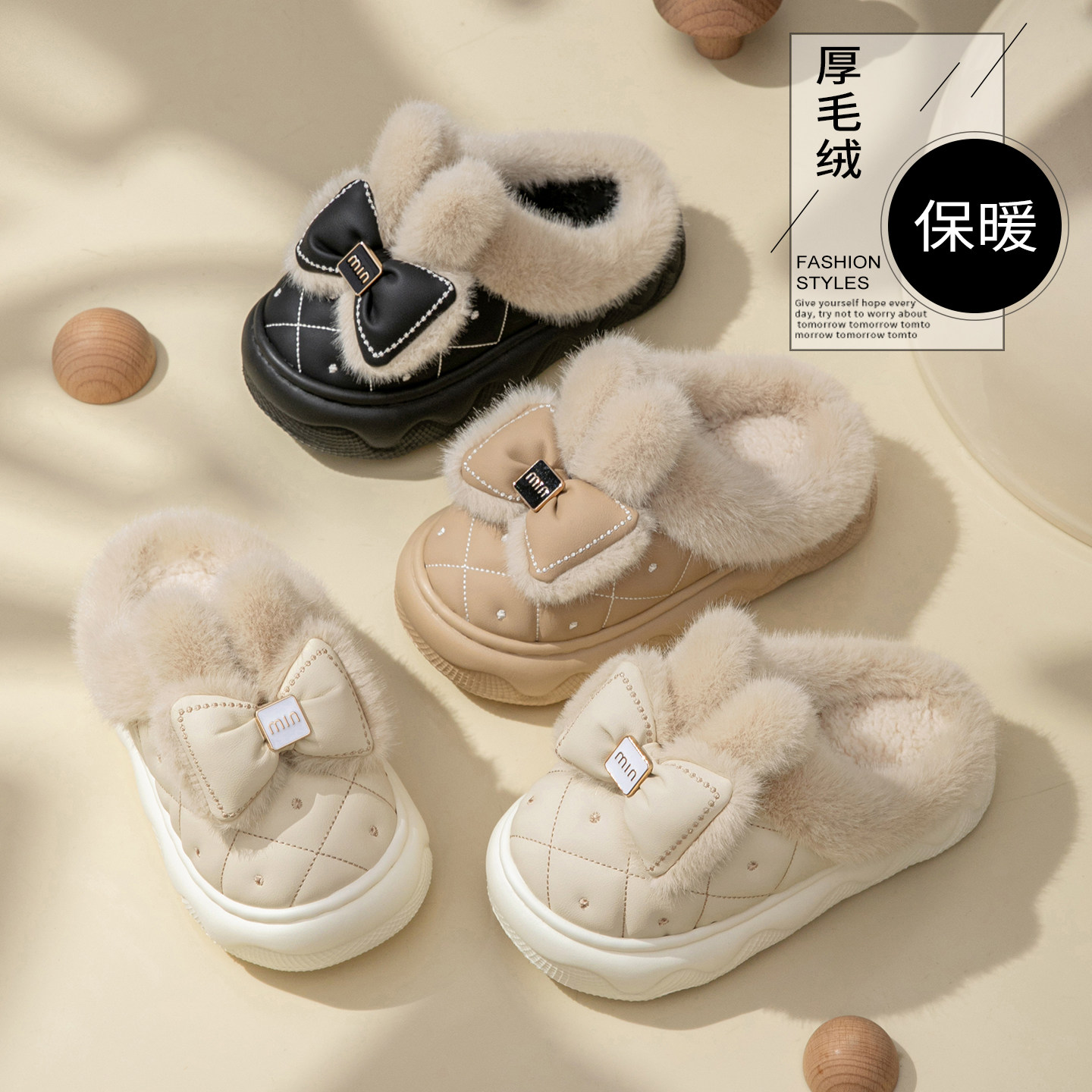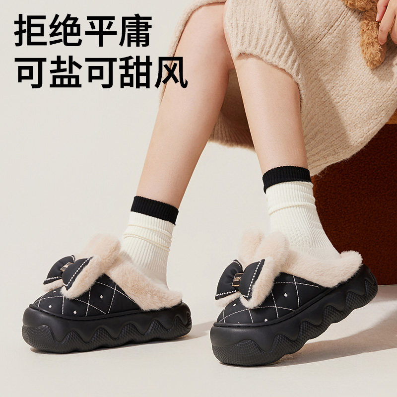可爱兔耳儿童棉拖鞋女童冬季新款居家室内加绒保暖防水亲子棉鞋女