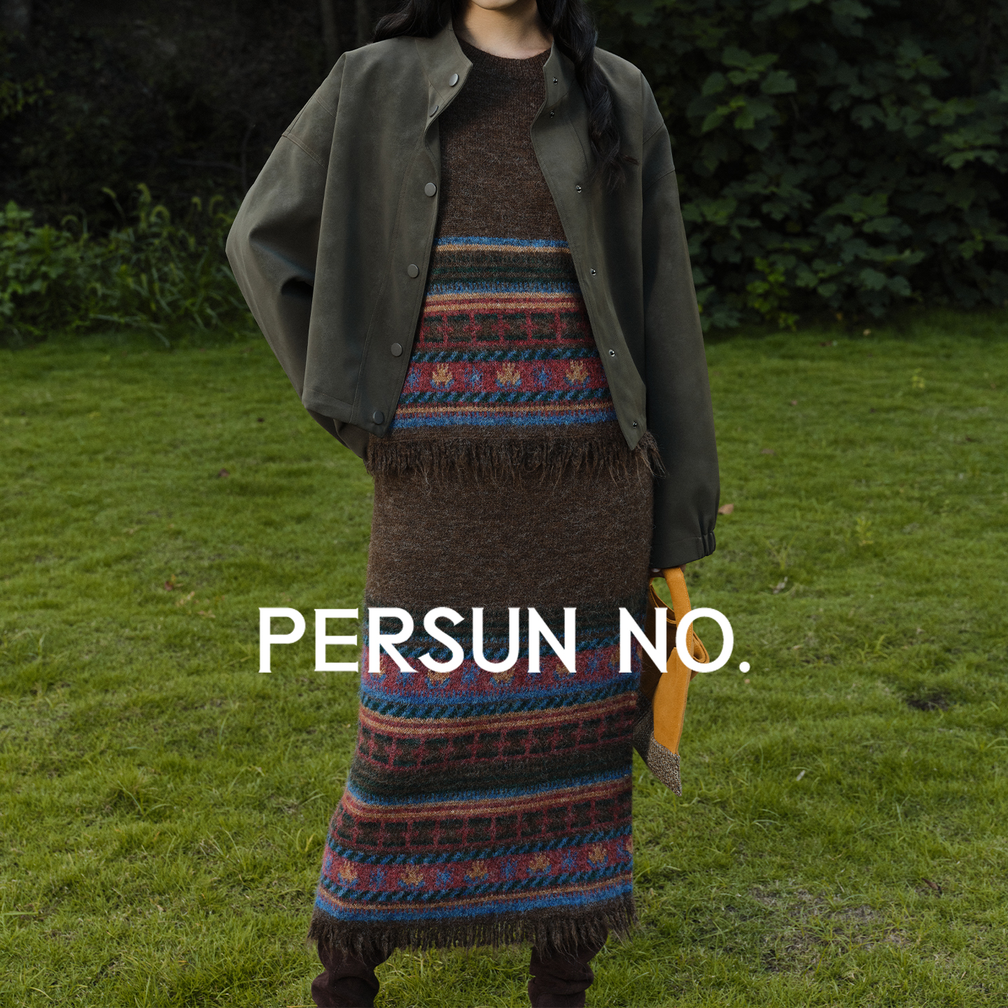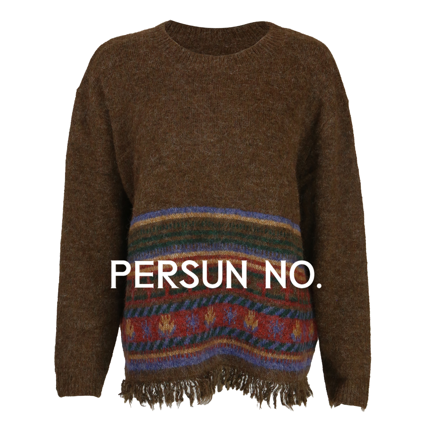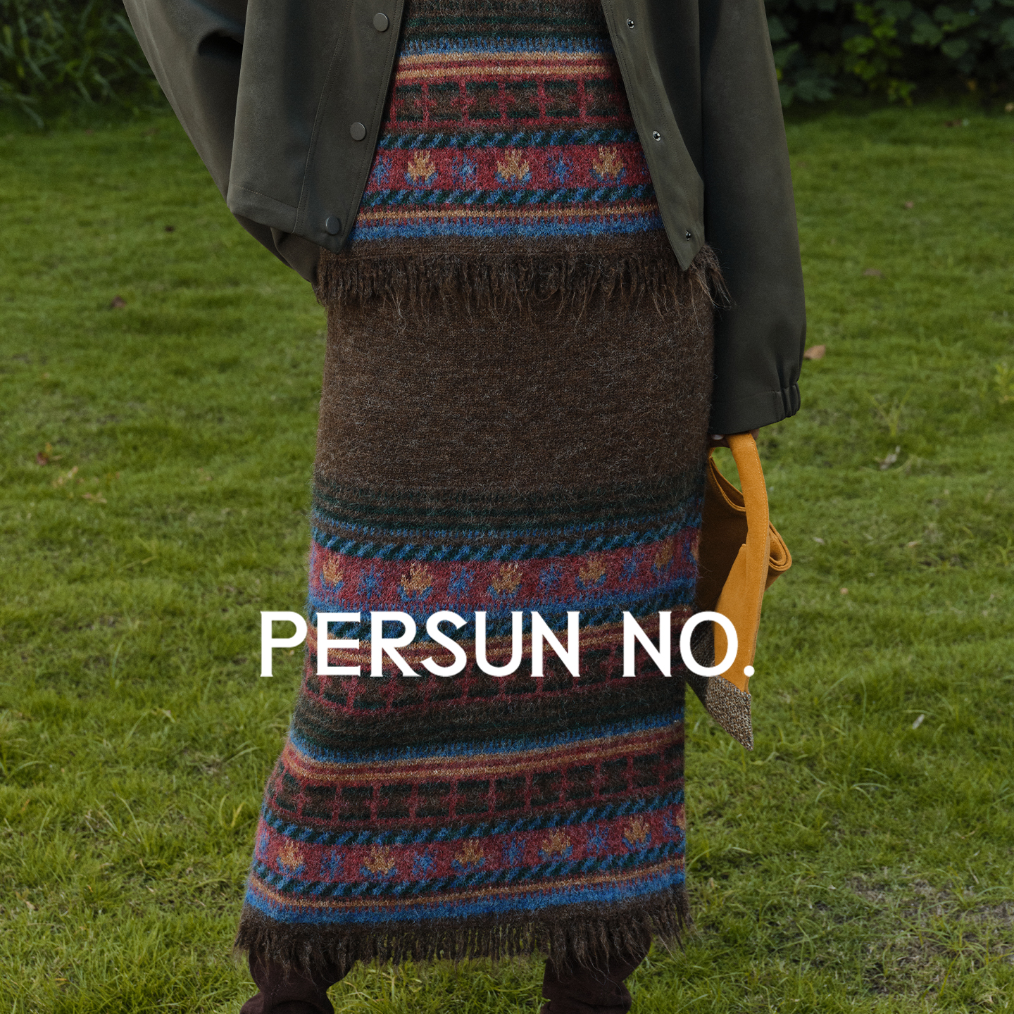 PERSUN NO.备述游牧风提花羊毛混纺手工流苏针织套装上衣+半裙