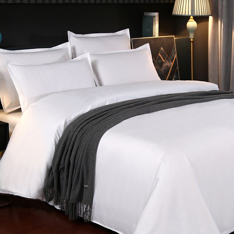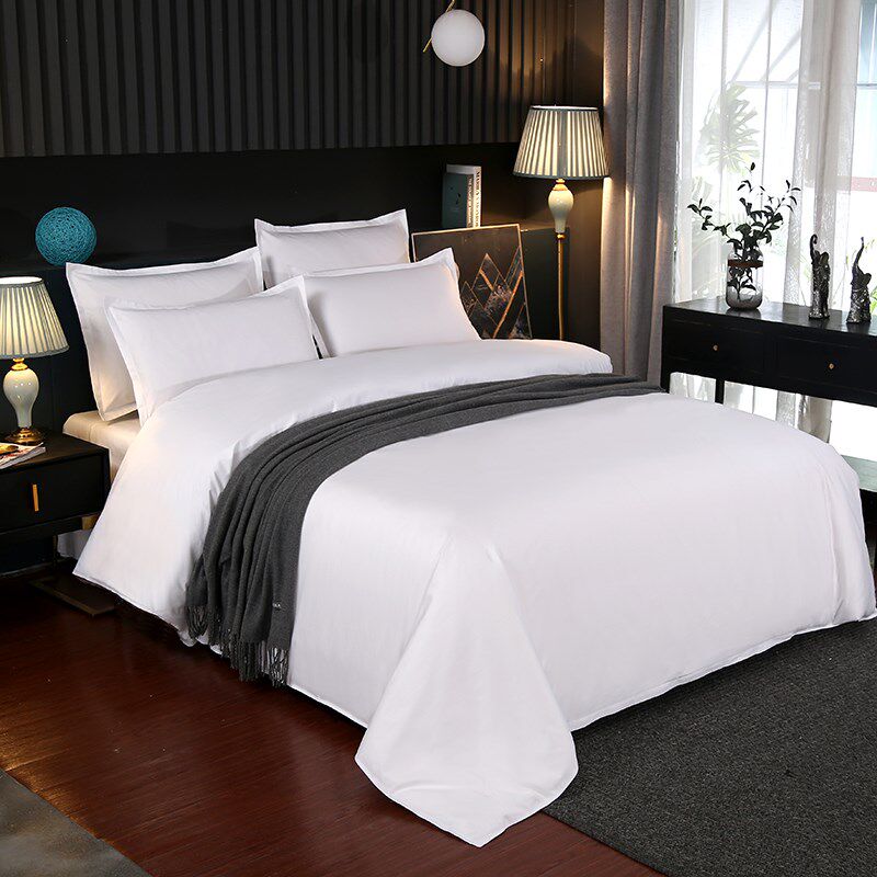 酒店布草床上四件套纯白色缎条床单被套宾馆民宿床套件可定制