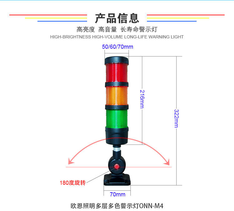 ONN欧恩LED三色警示灯机床多层信号声光报警器塔灯i1-60/M4警报灯