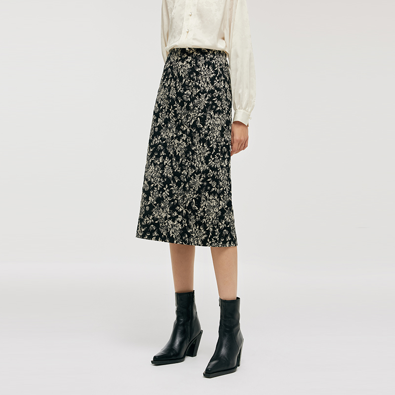 歌莉娅半身裙女秋季新款气质通勤碎花包臀半截裙子1C9R2B250