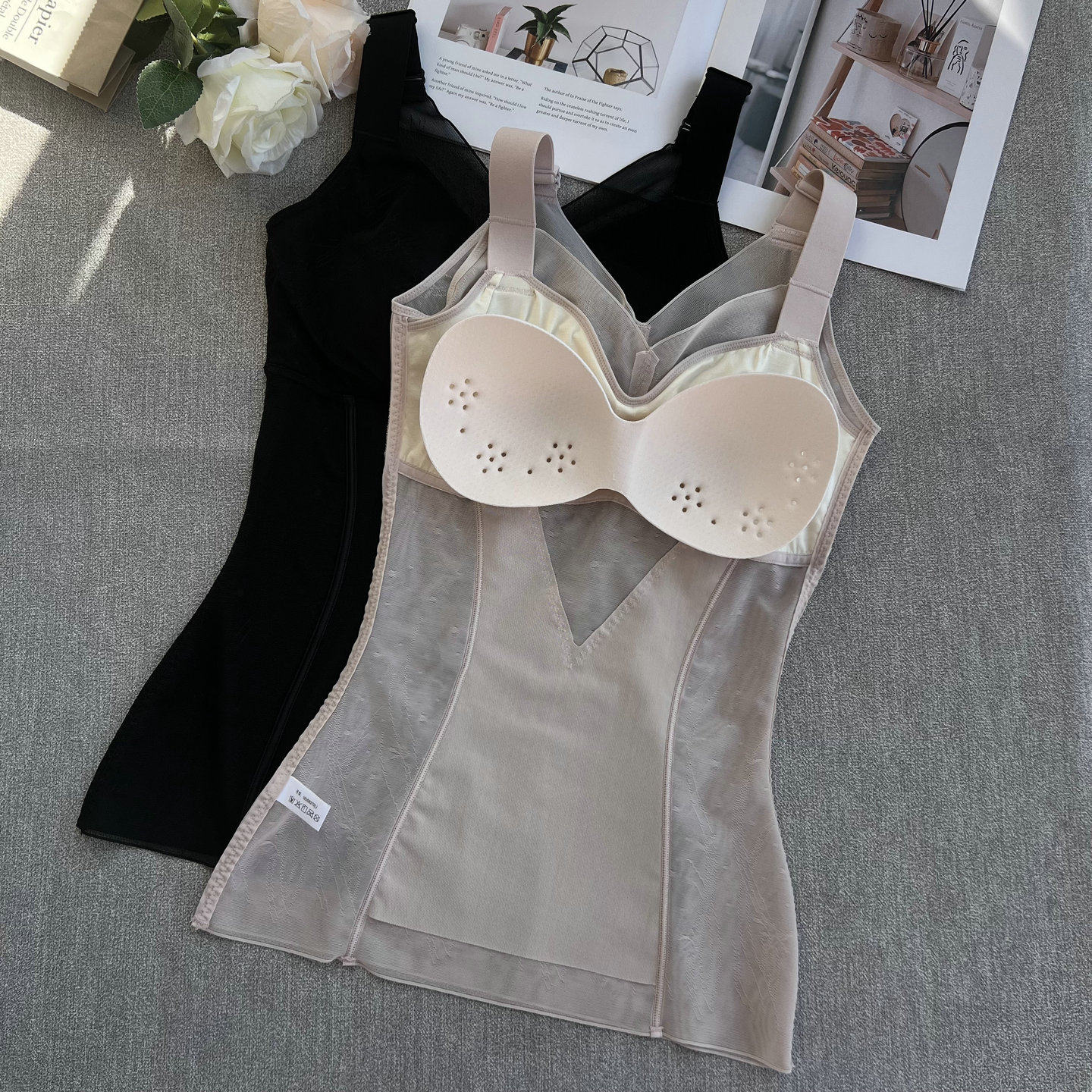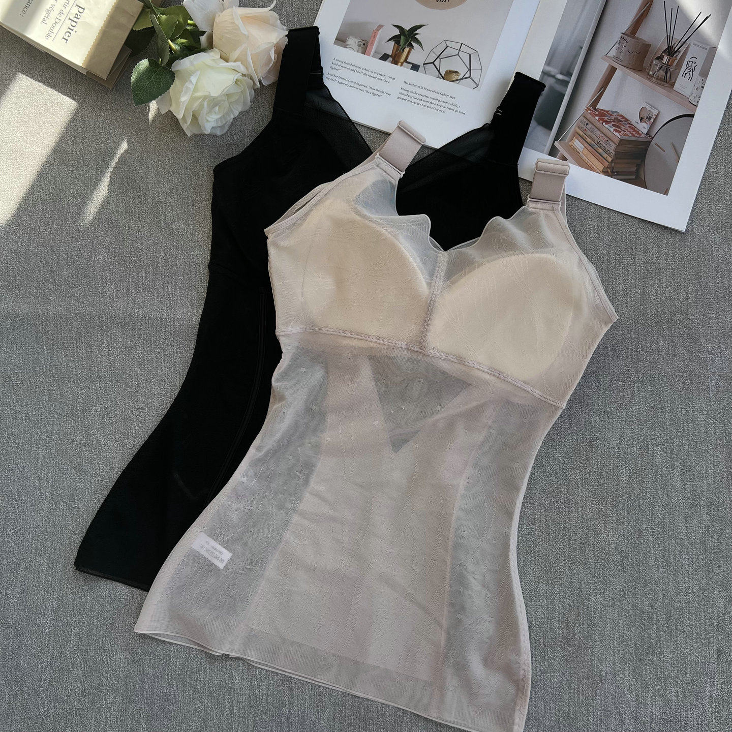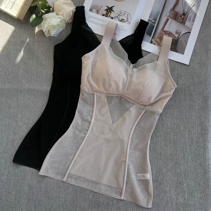 塑身吊带背心薄款网纱透气收腹束腰显瘦内衣女可脱卸内杯打底上衣