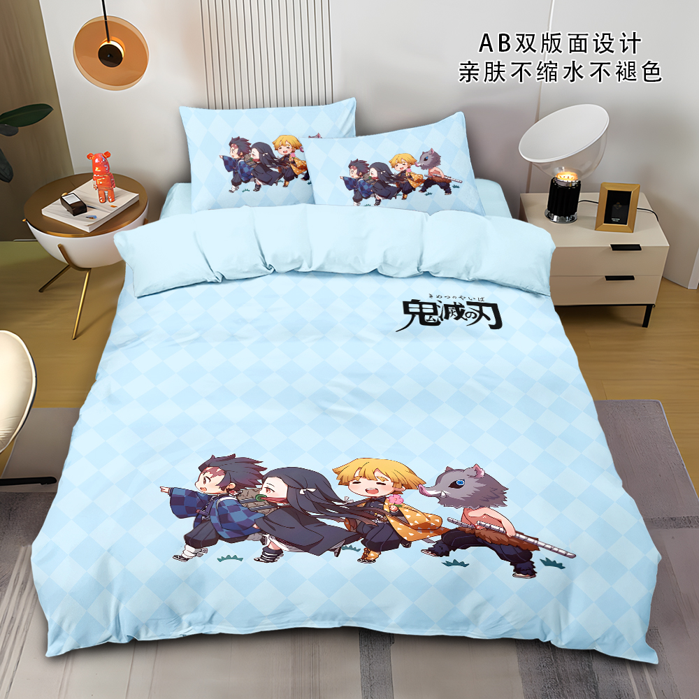 鬼灭之刃炭治郎被套床笠四件套动漫卡通学生宿舍床品三件套非纯棉