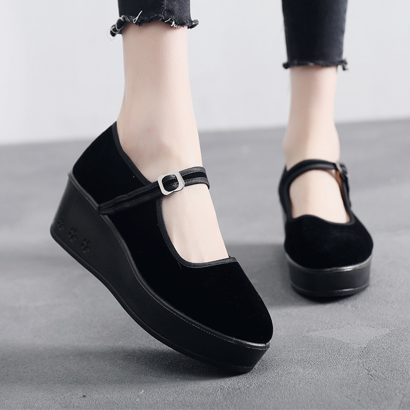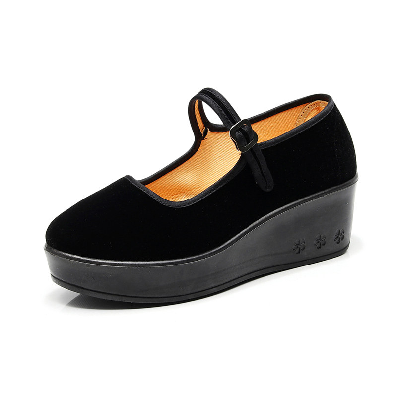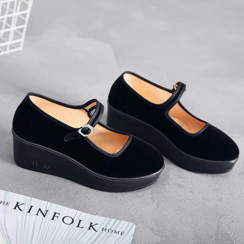 松糕厚底高跟鞋老北京布鞋女鞋旗舰店官方酒店工作单鞋春秋妈妈鞋