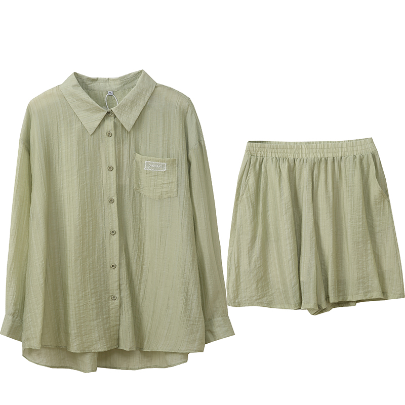 小个子显瘦轻薄遮肉衬衫短裤套装