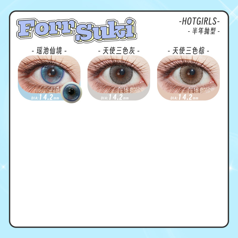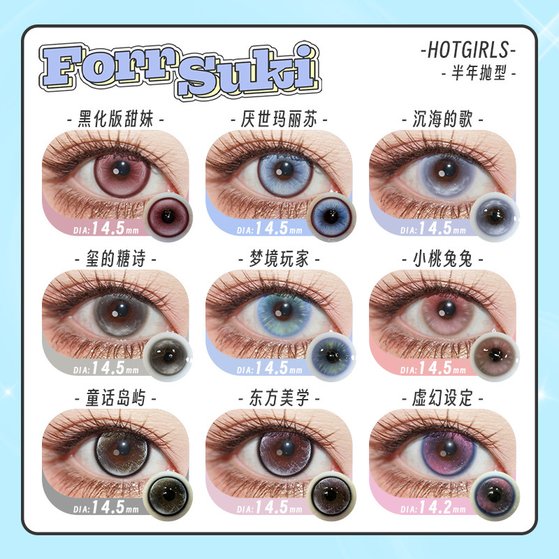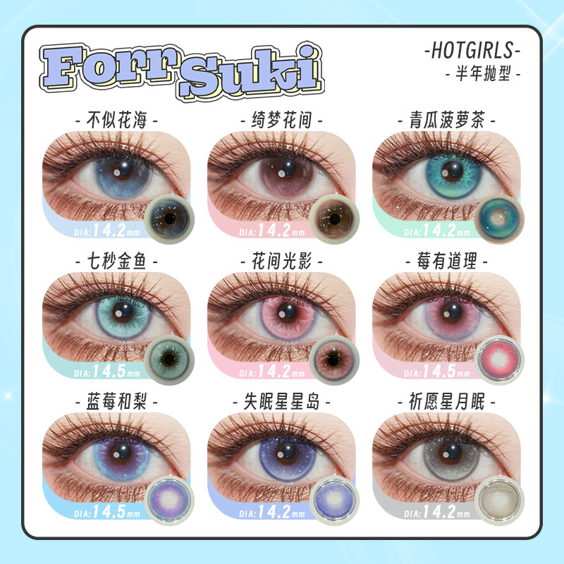 【正品保证】Hotgirls半年美瞳蔚海蓝光眼角泪缎带花世青瓜菠萝茶