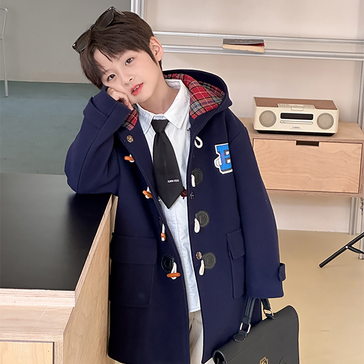 虾酱麻麻男童中长款呢大衣秋冬装2025新款男孩学院风加厚儿童外套
