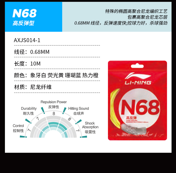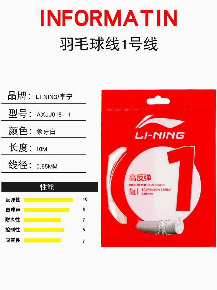李宁羽毛球线羽毛球拍线1号线5号耐打专用羽线高反弹N65/N68/N69