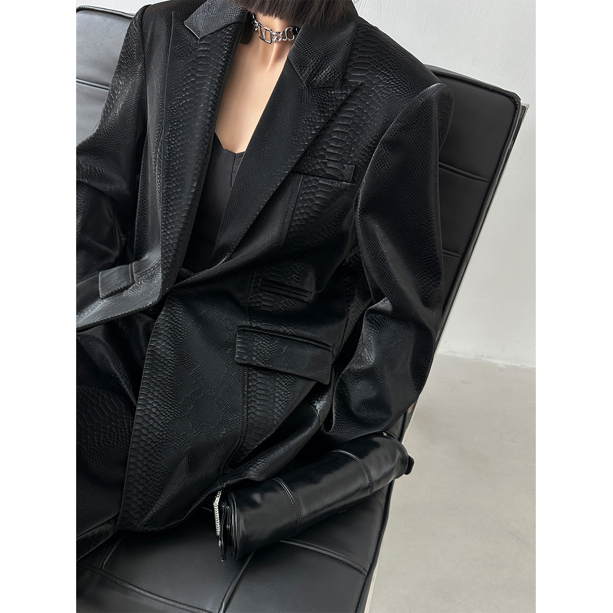 PAPERLLL辛间宽松直筒廓形绗棉皮衣外套开叉半身裙时尚套装女秋冬