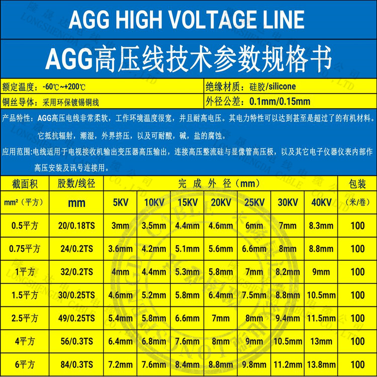 AGG硅胶高压线直流5/10/15/20/25/30/40KV 0.5 1.5 2.5平方点火线